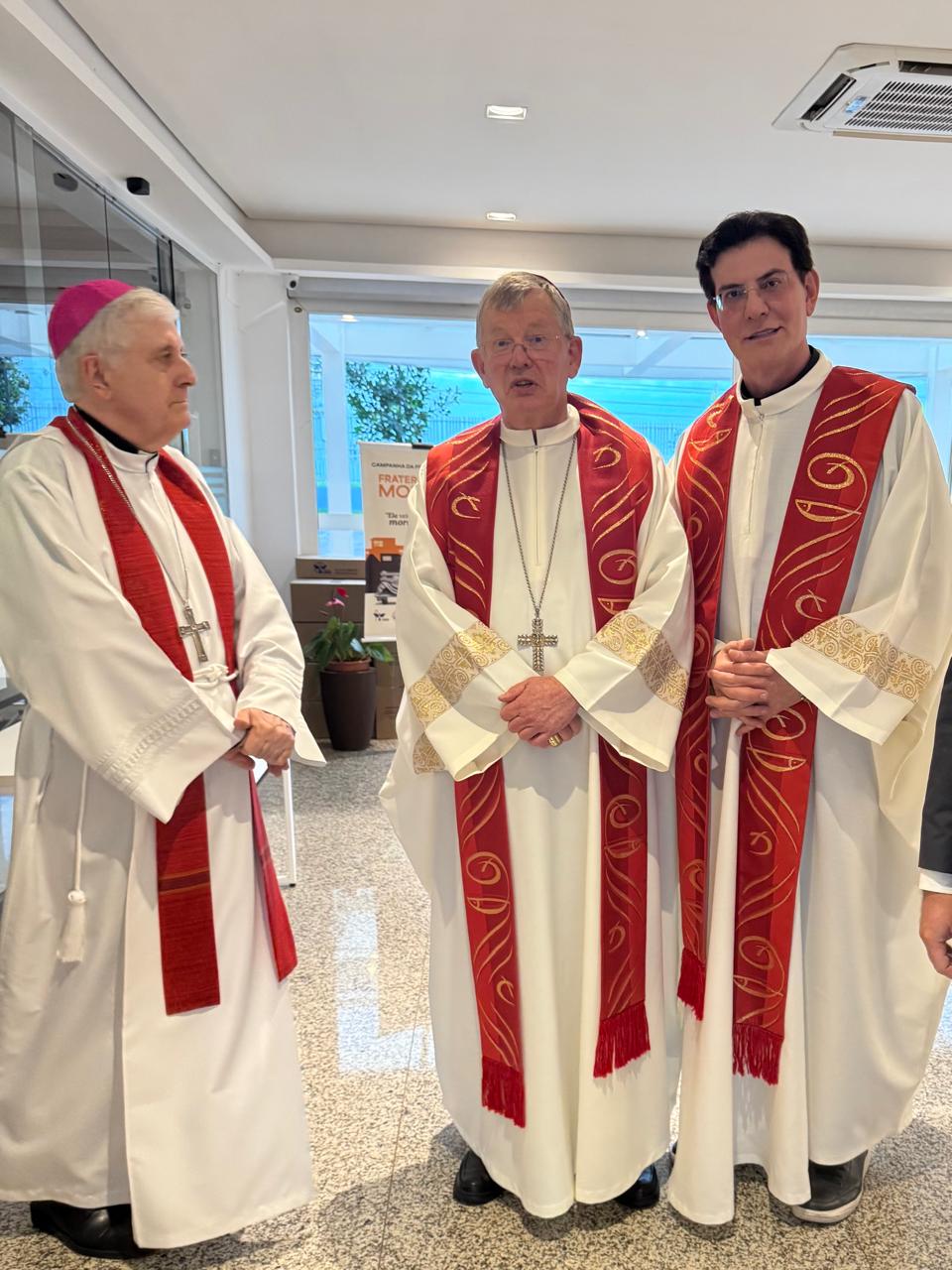 Um momento histórico com Cardeal Dom Jaime Spengler, presidente da CNBB, o Núncio Apostólico no Brasil, Dom Giambattista Diquattro, Dom Valdir José de Castro, presidente da Comissão para a Comunicação da CNBB, Dom Amilton Manoel da Silva, Membro da Comissão Episcopal para a Comunicação Social da CNBB, Dom Edilson Soares Nobre, membro da Comissão Episcopal Pastoral para a Comunicação da CNBB e irmãos sacerdotes que evangelizam pelos meios digitais.