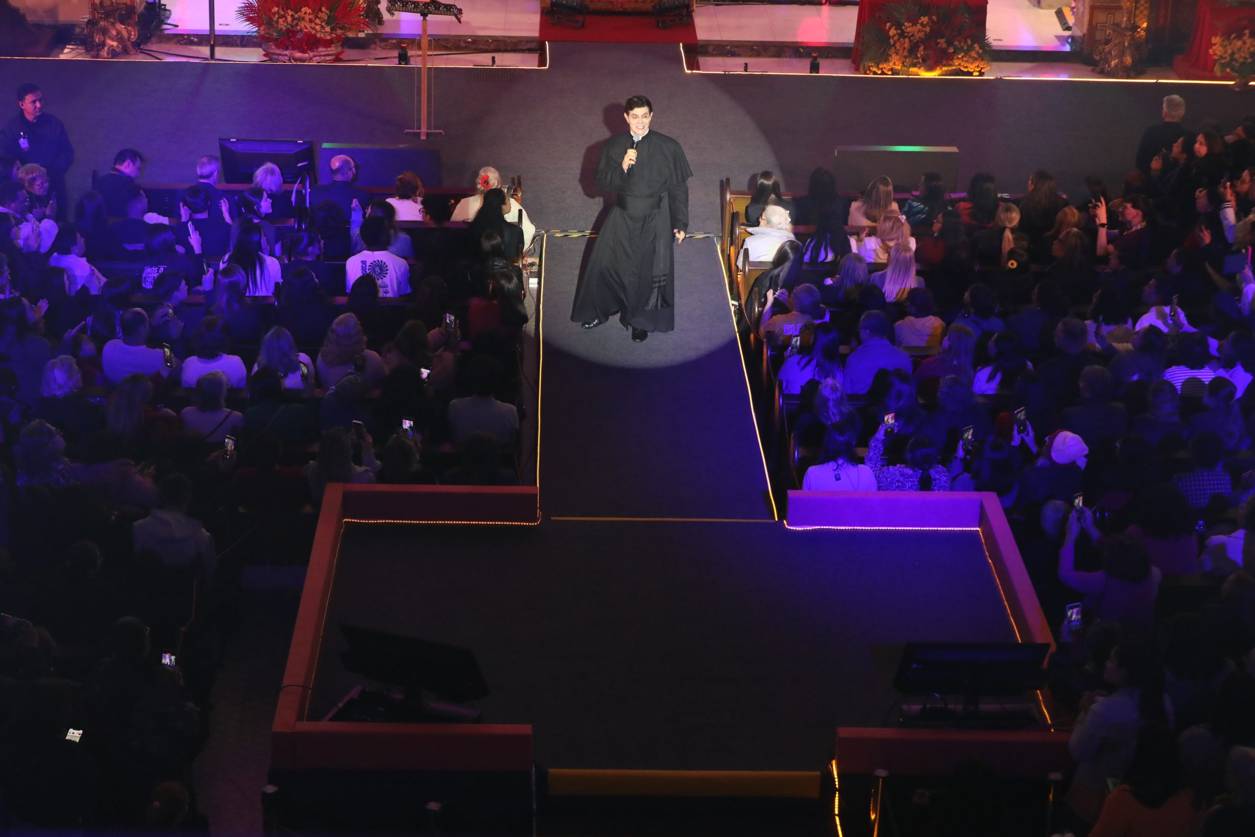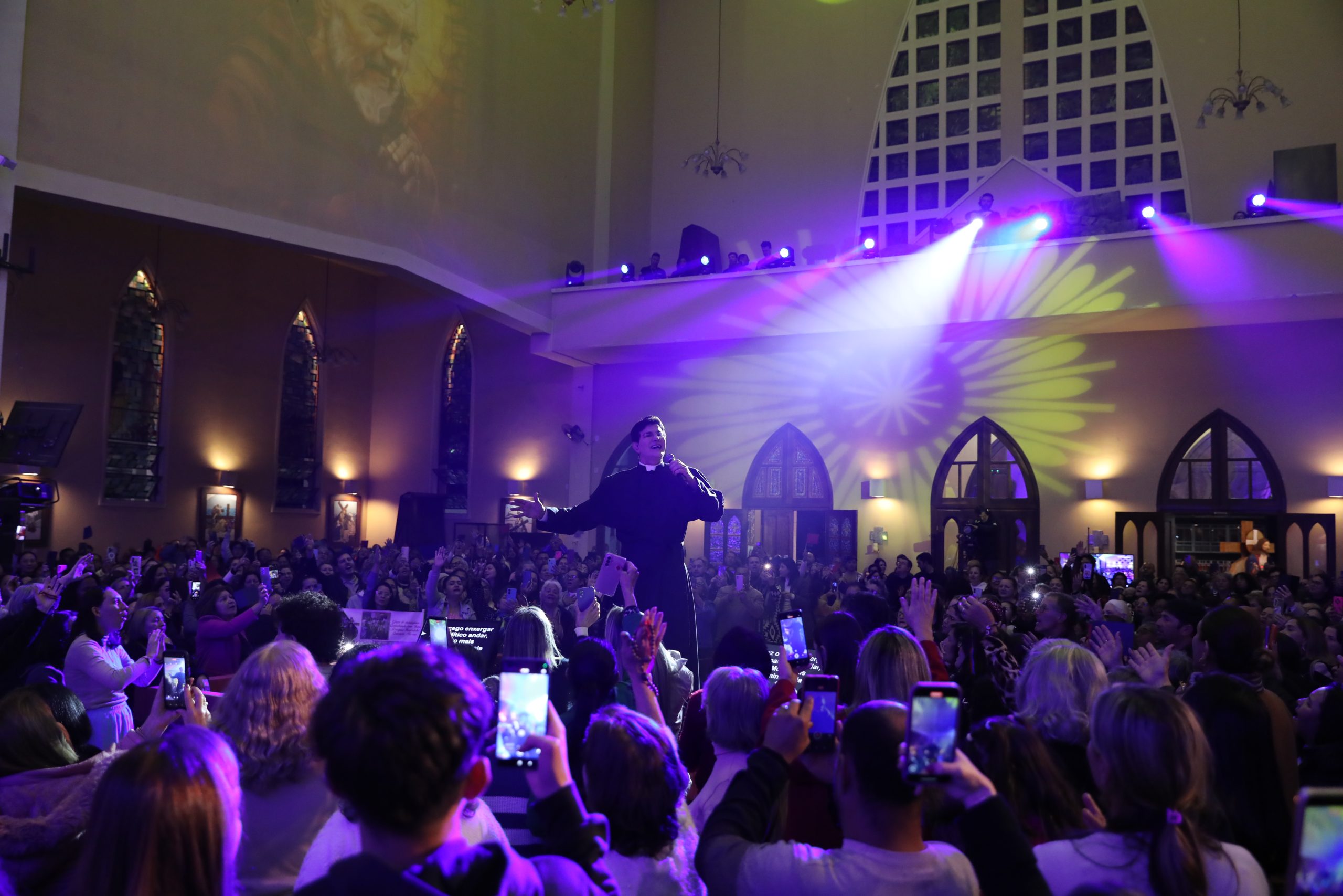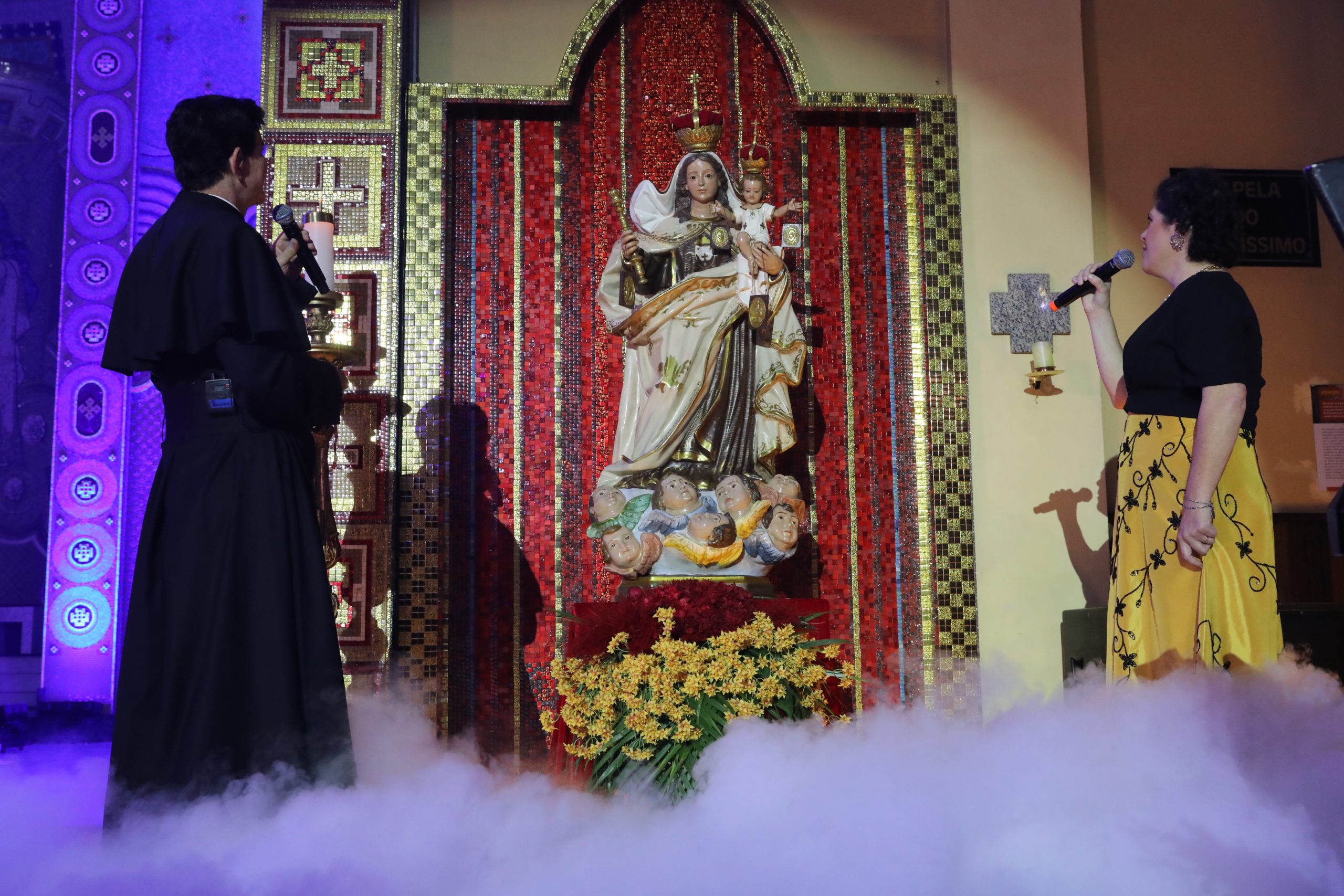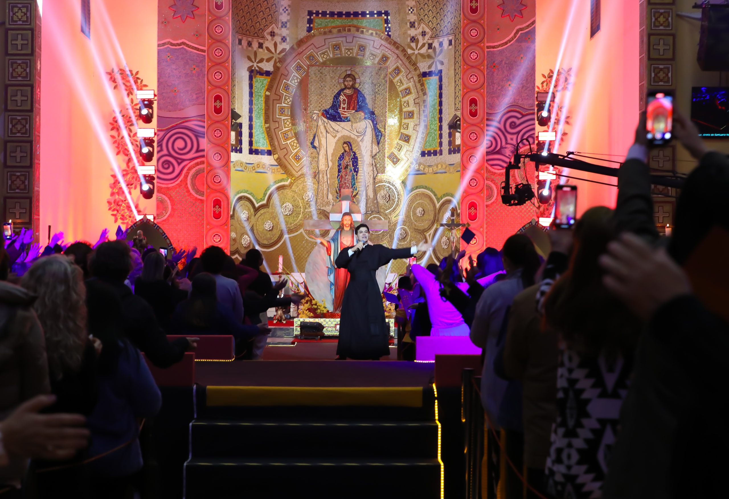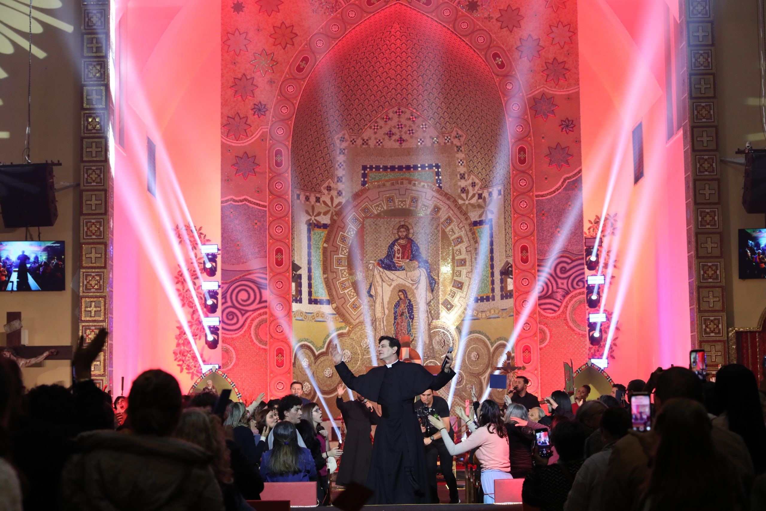 Padre Reginaldo Manzotti recebeu Frei Renan, Padre Ezequiel Dal Pozzo e Joelma Datovo no seu show desta sexta-feira na X Festa das Santas Chagas. O show marcou o início do Jubileu de 20 anos da Associação Evangelizar É Preciso.