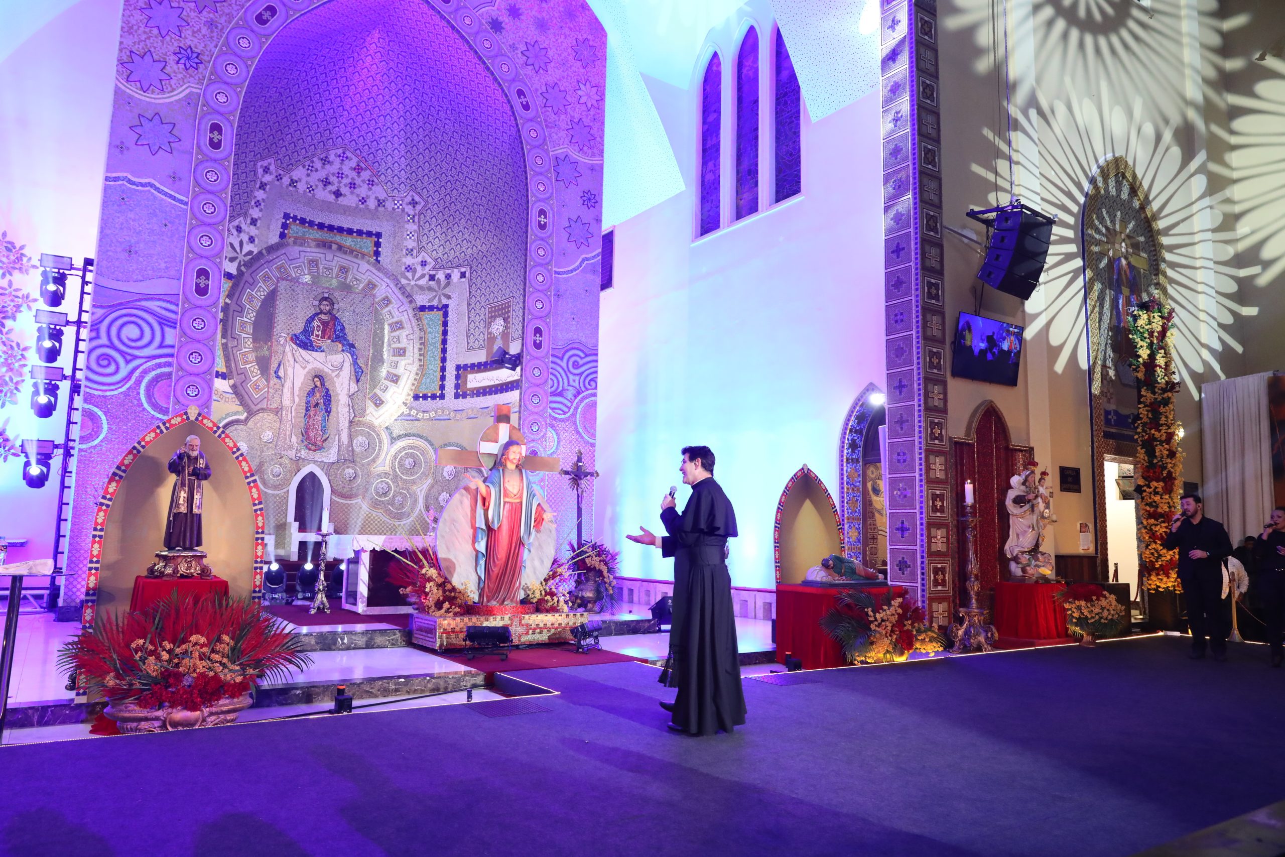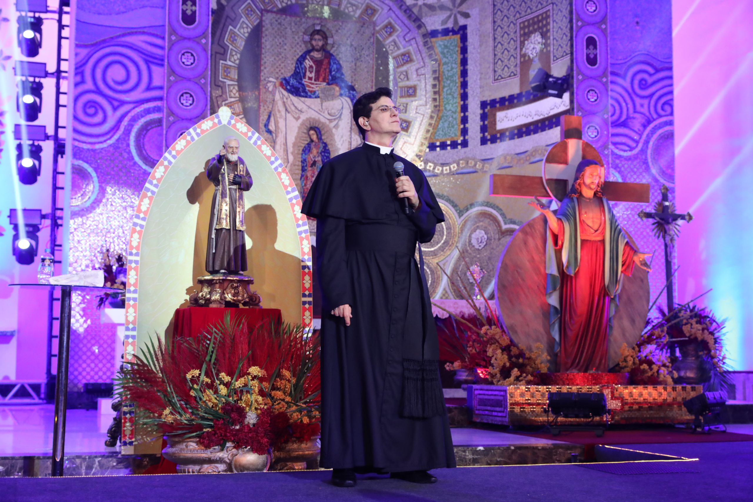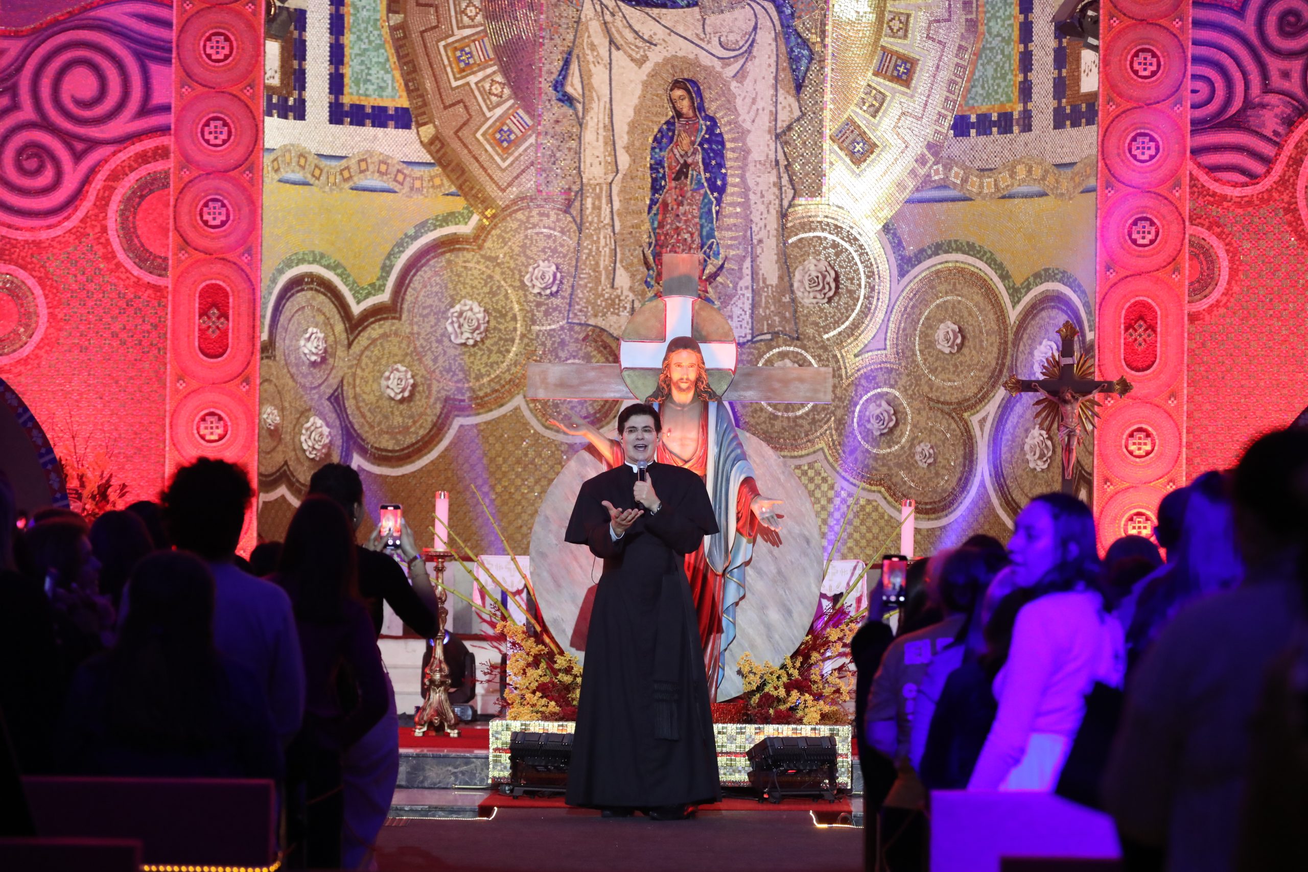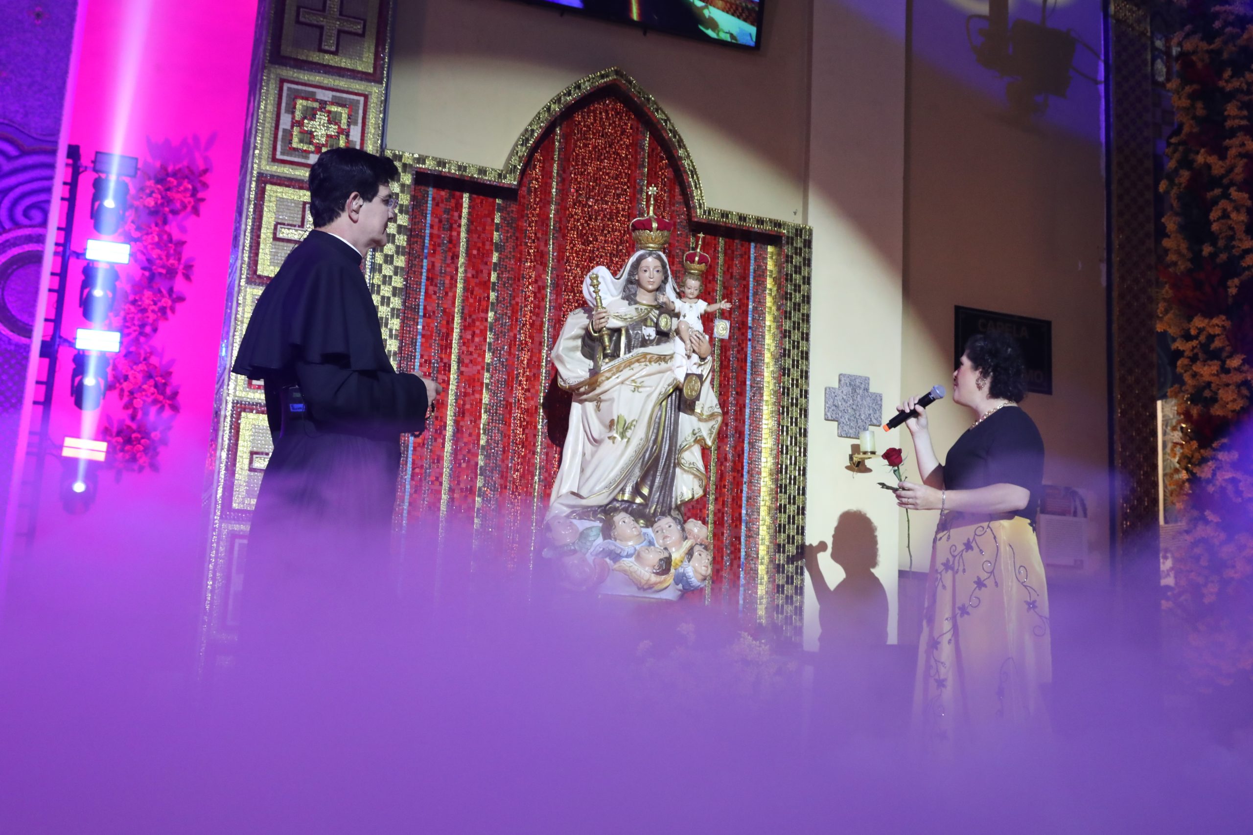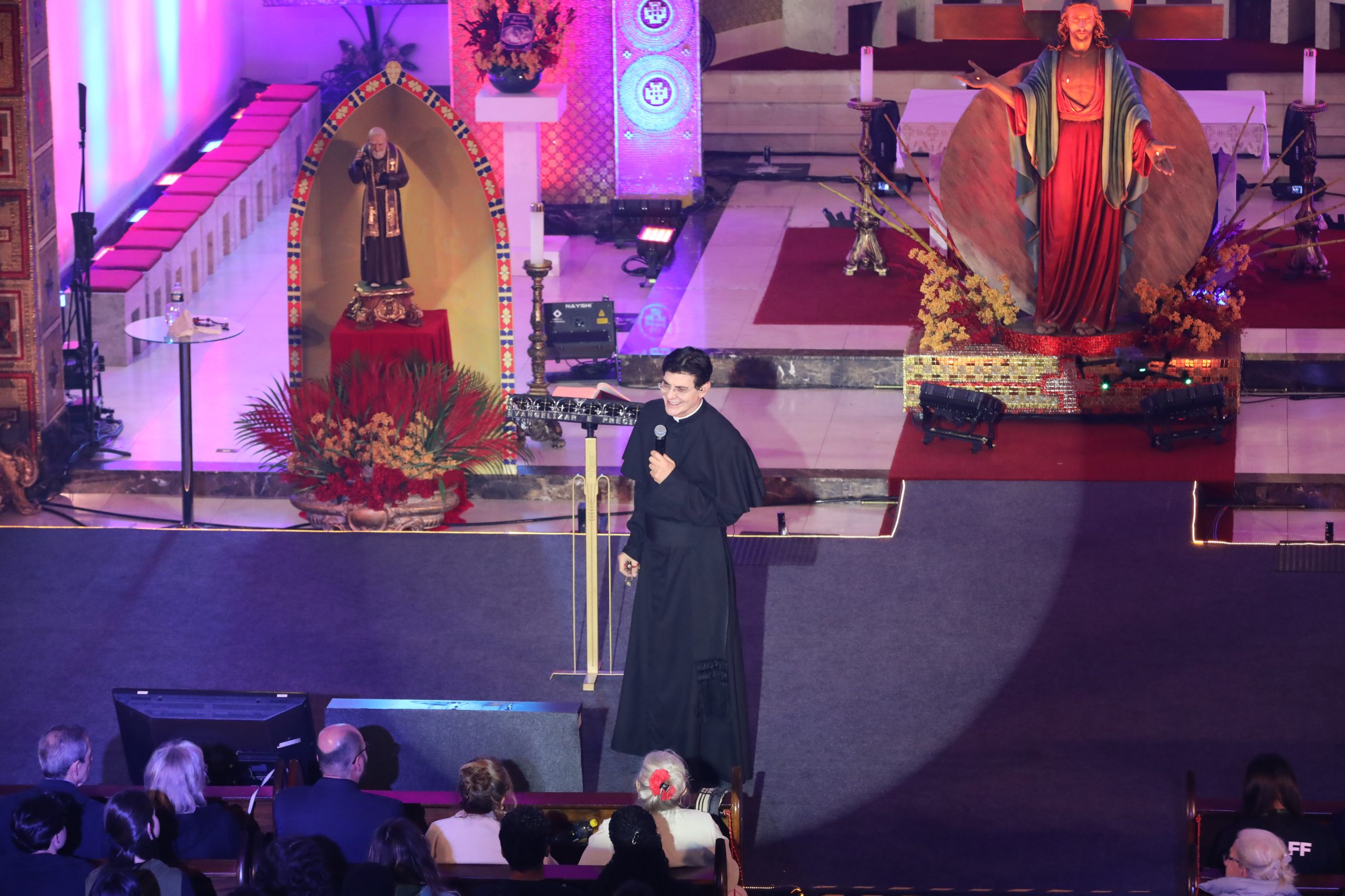 Padre Reginaldo Manzotti recebeu Frei Renan, Padre Ezequiel Dal Pozzo e Joelma Datovo no seu show desta sexta-feira na X Festa das Santas Chagas. O show marcou o início do Jubileu de 20 anos da Associação Evangelizar É Preciso.