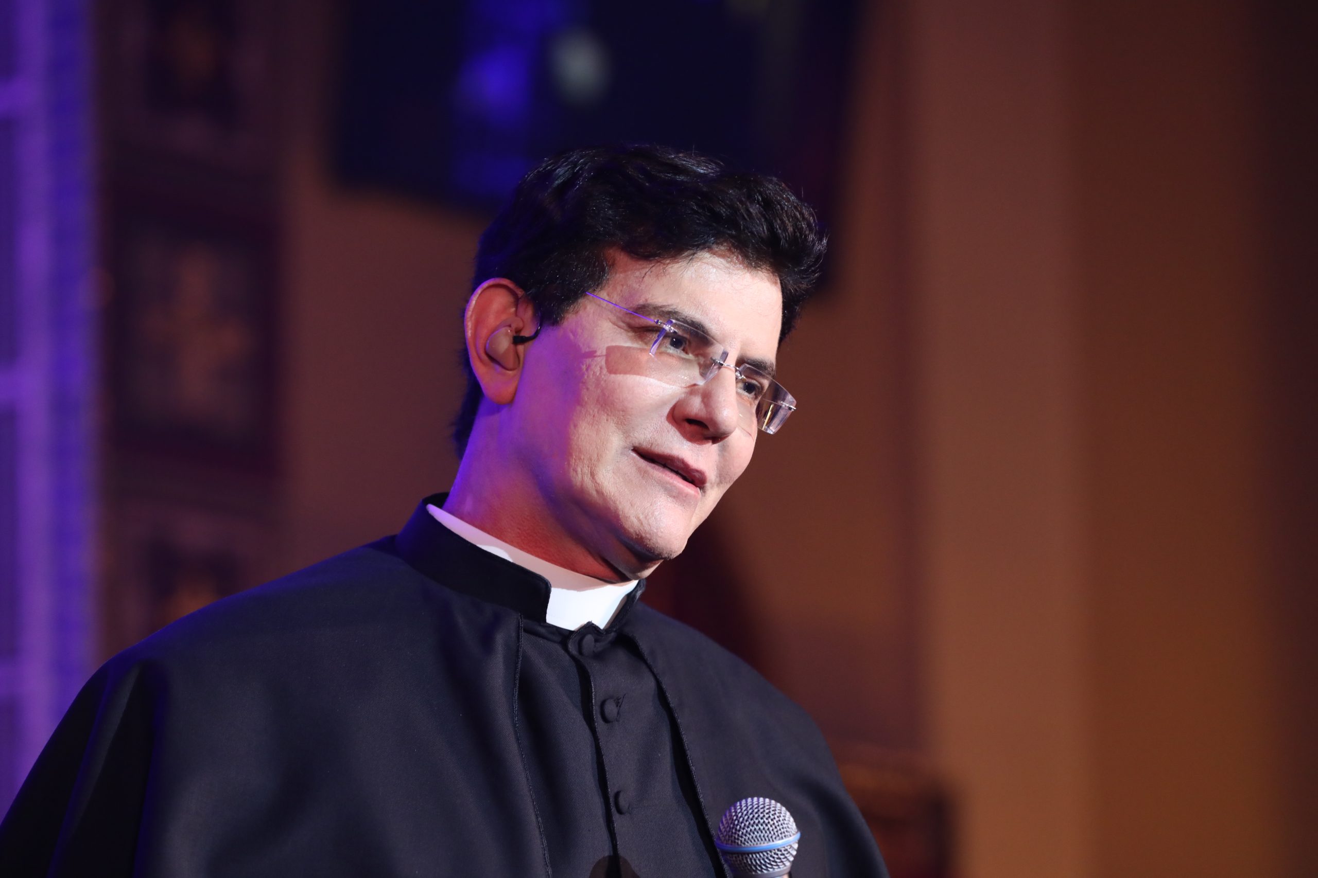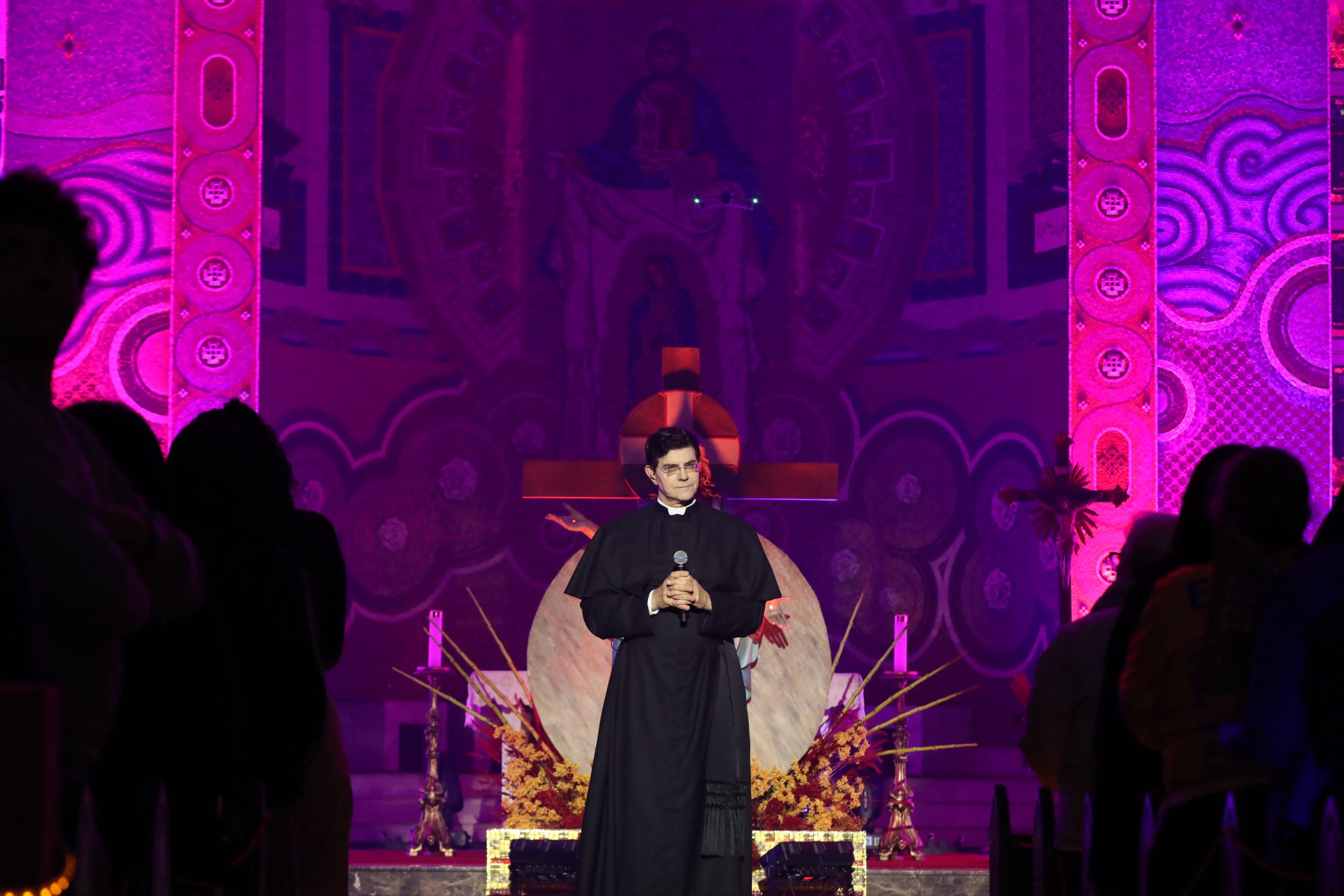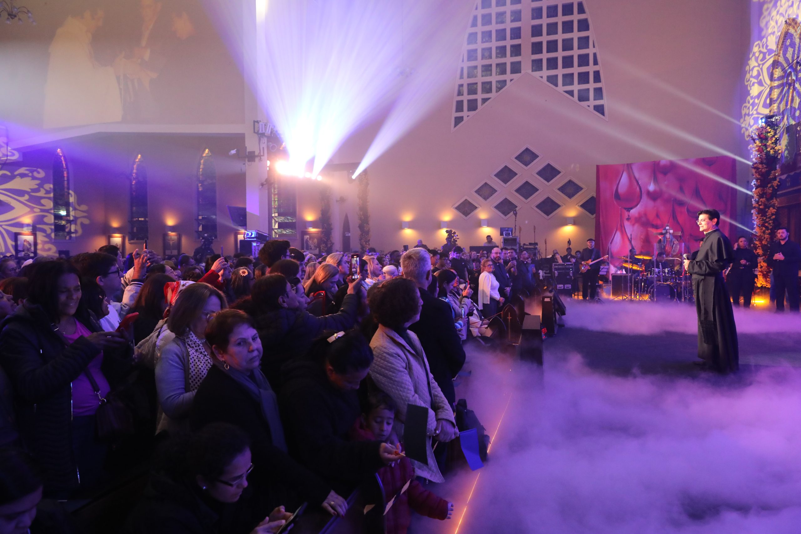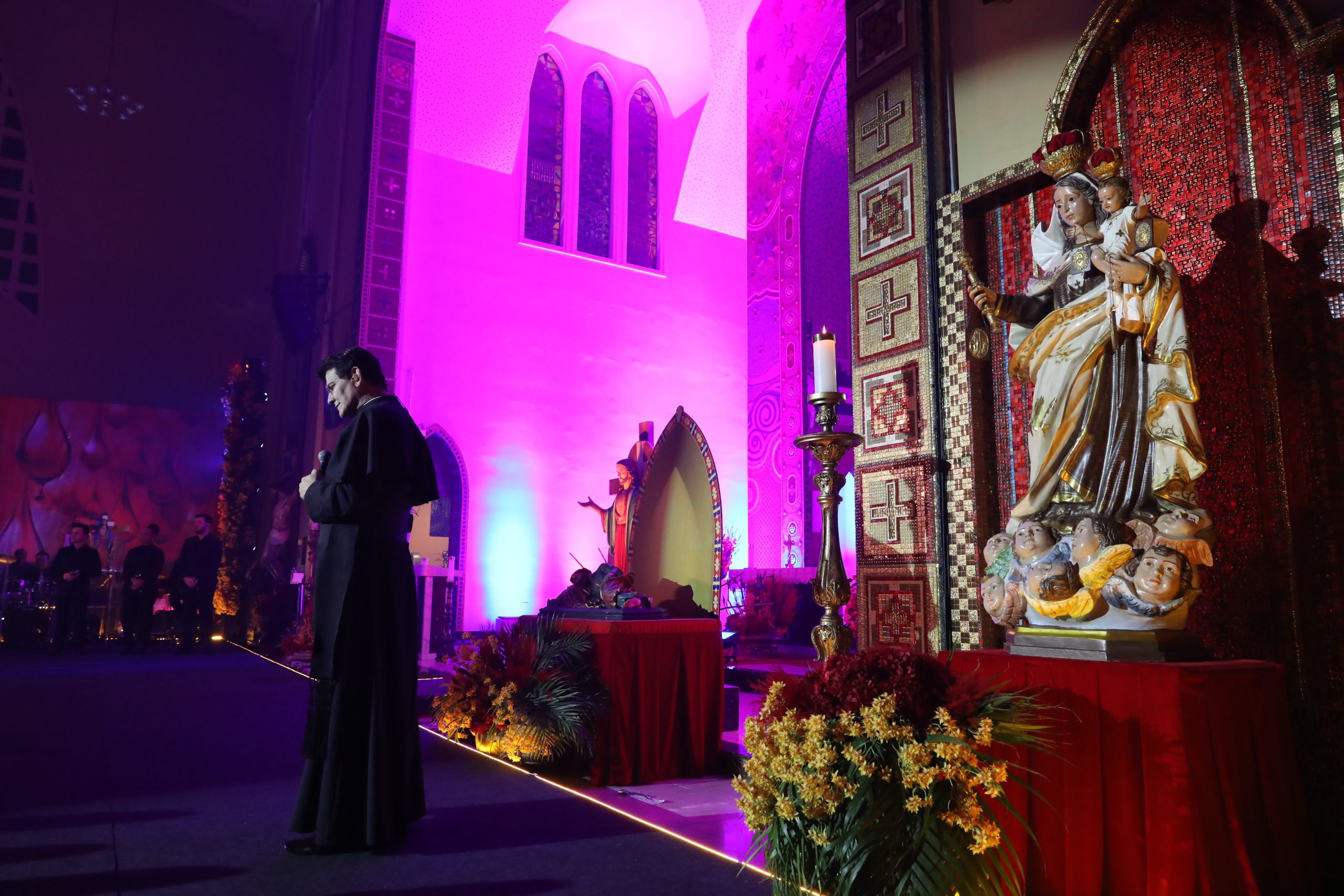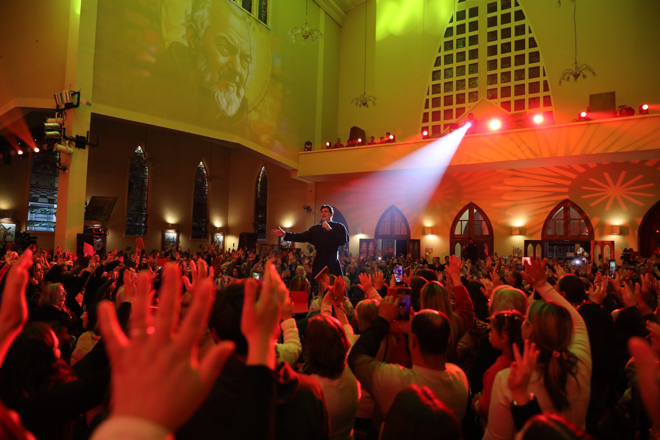 Padre Reginaldo Manzotti recebeu Frei Renan, Padre Ezequiel Dal Pozzo e Joelma Datovo no seu show desta sexta-feira na X Festa das Santas Chagas. O show marcou o início do Jubileu de 20 anos da Associação Evangelizar É Preciso.