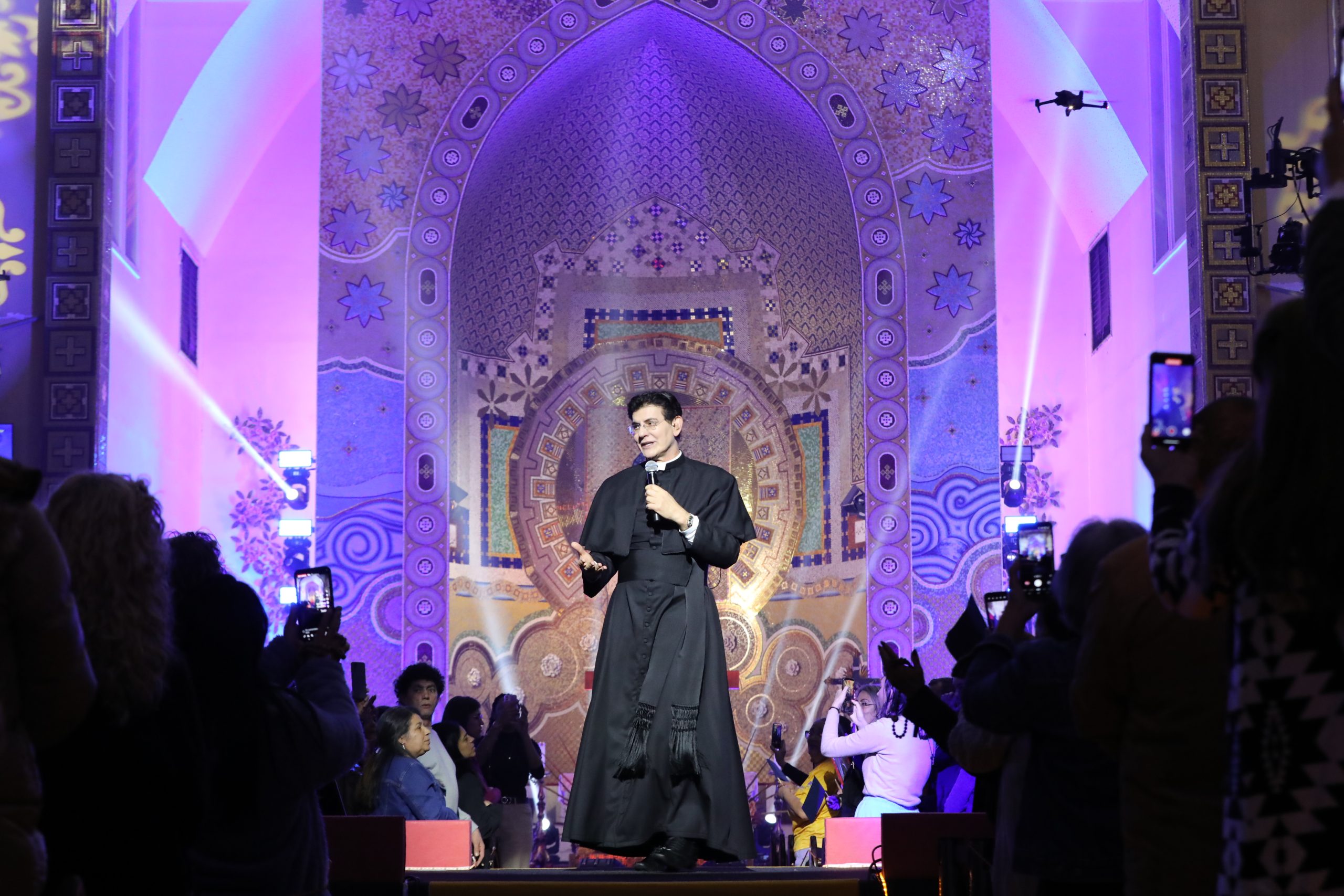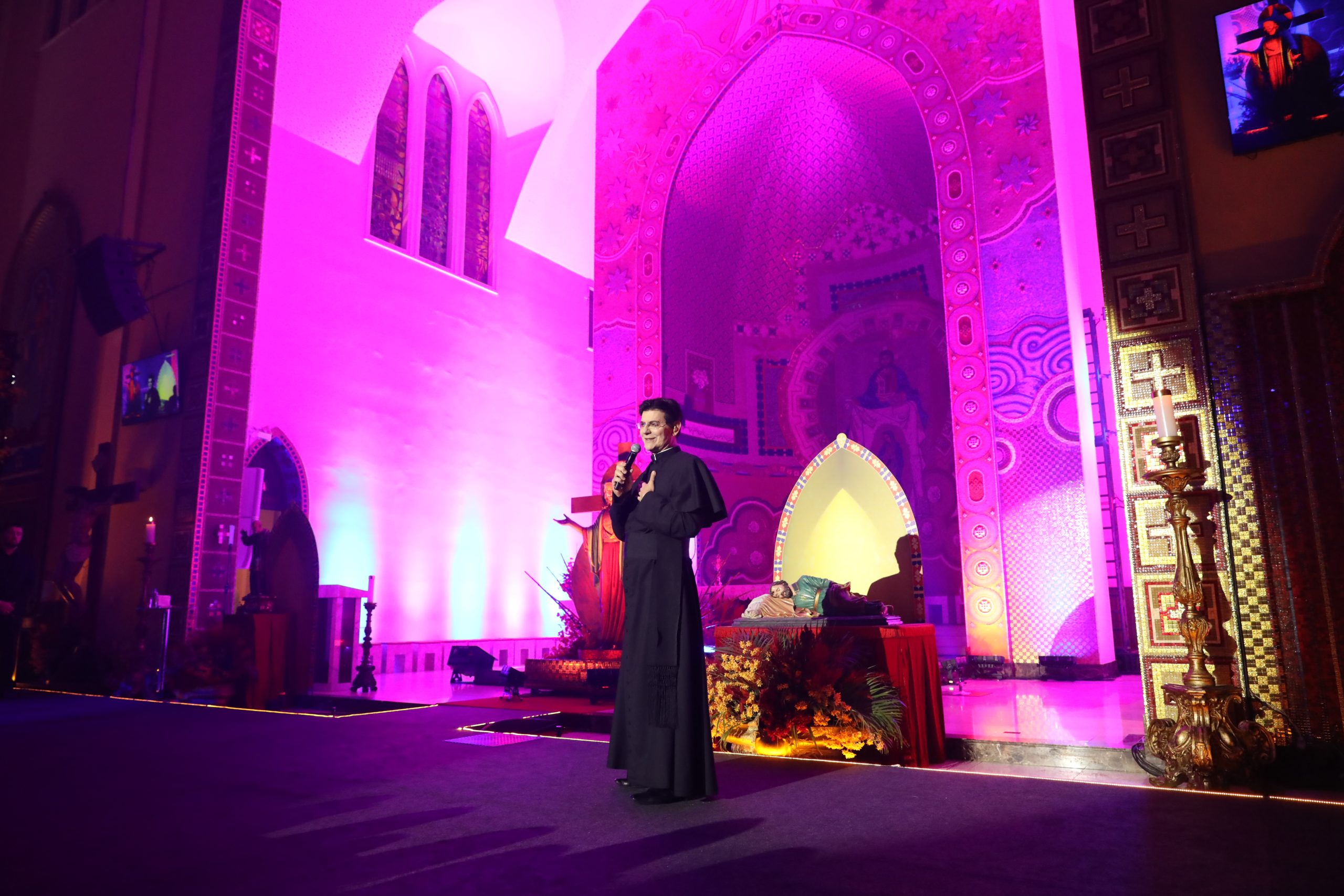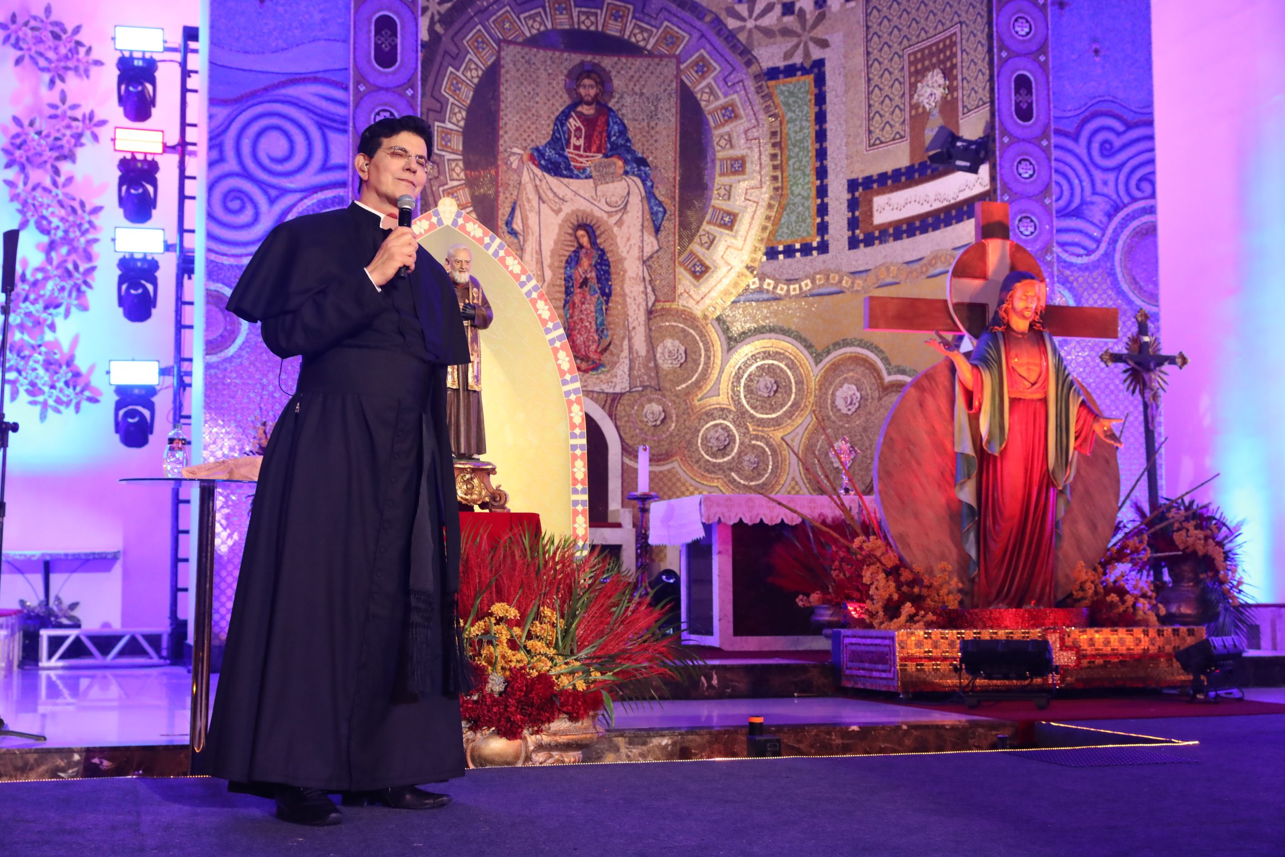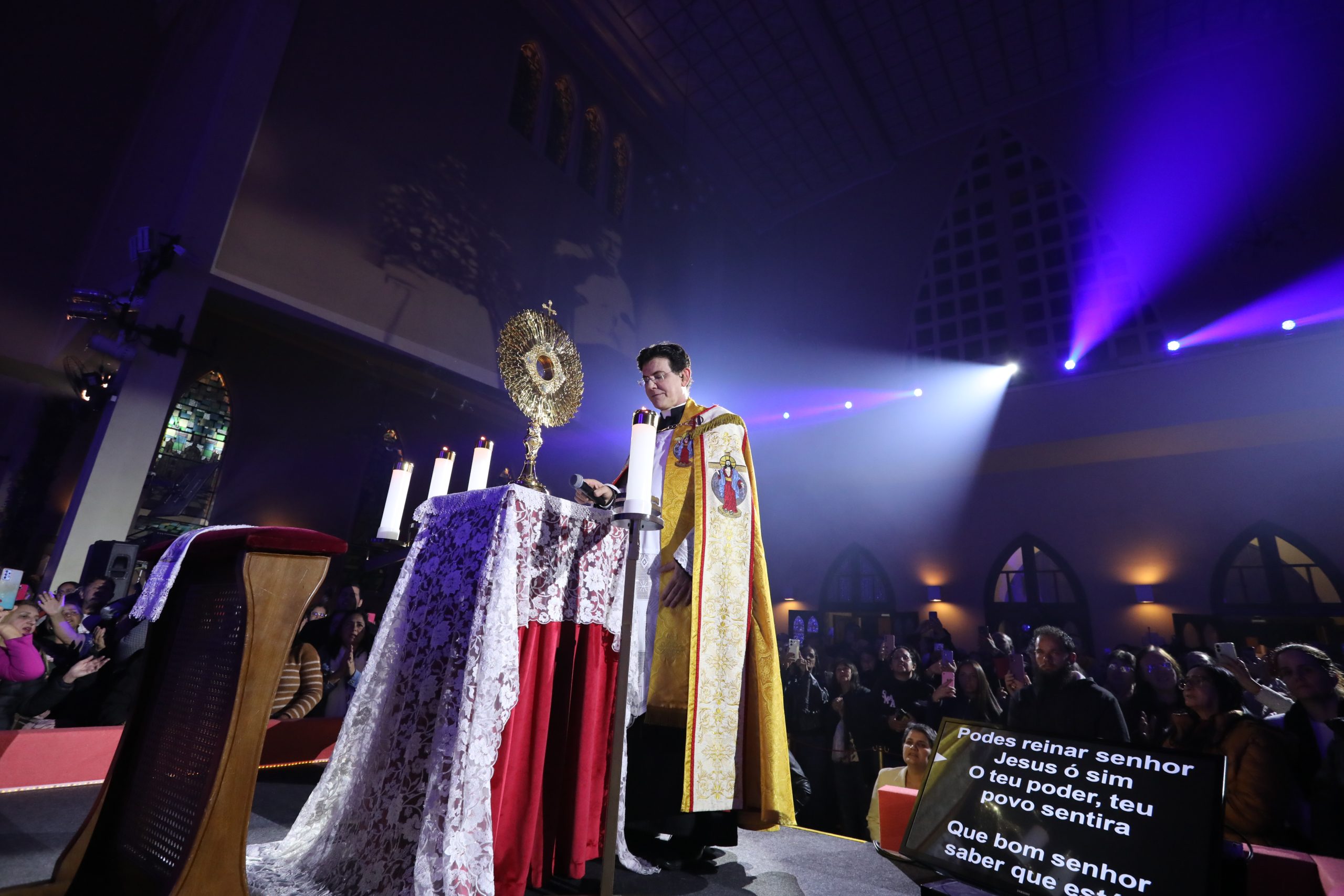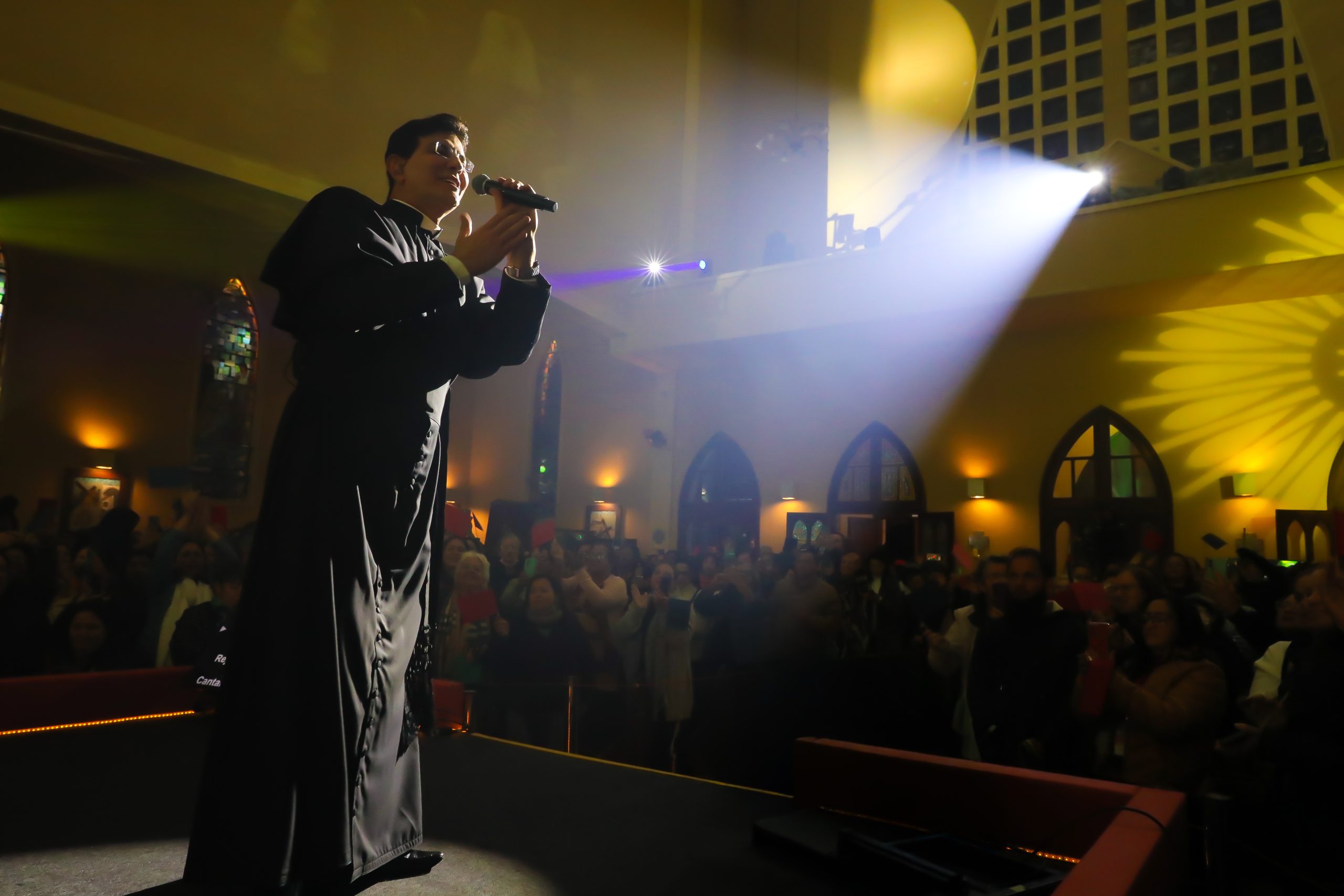 Padre Reginaldo Manzotti recebeu Frei Renan, Padre Ezequiel Dal Pozzo e Joelma Datovo no seu show desta sexta-feira na X Festa das Santas Chagas. O show marcou o início do Jubileu de 20 anos da Associação Evangelizar É Preciso.