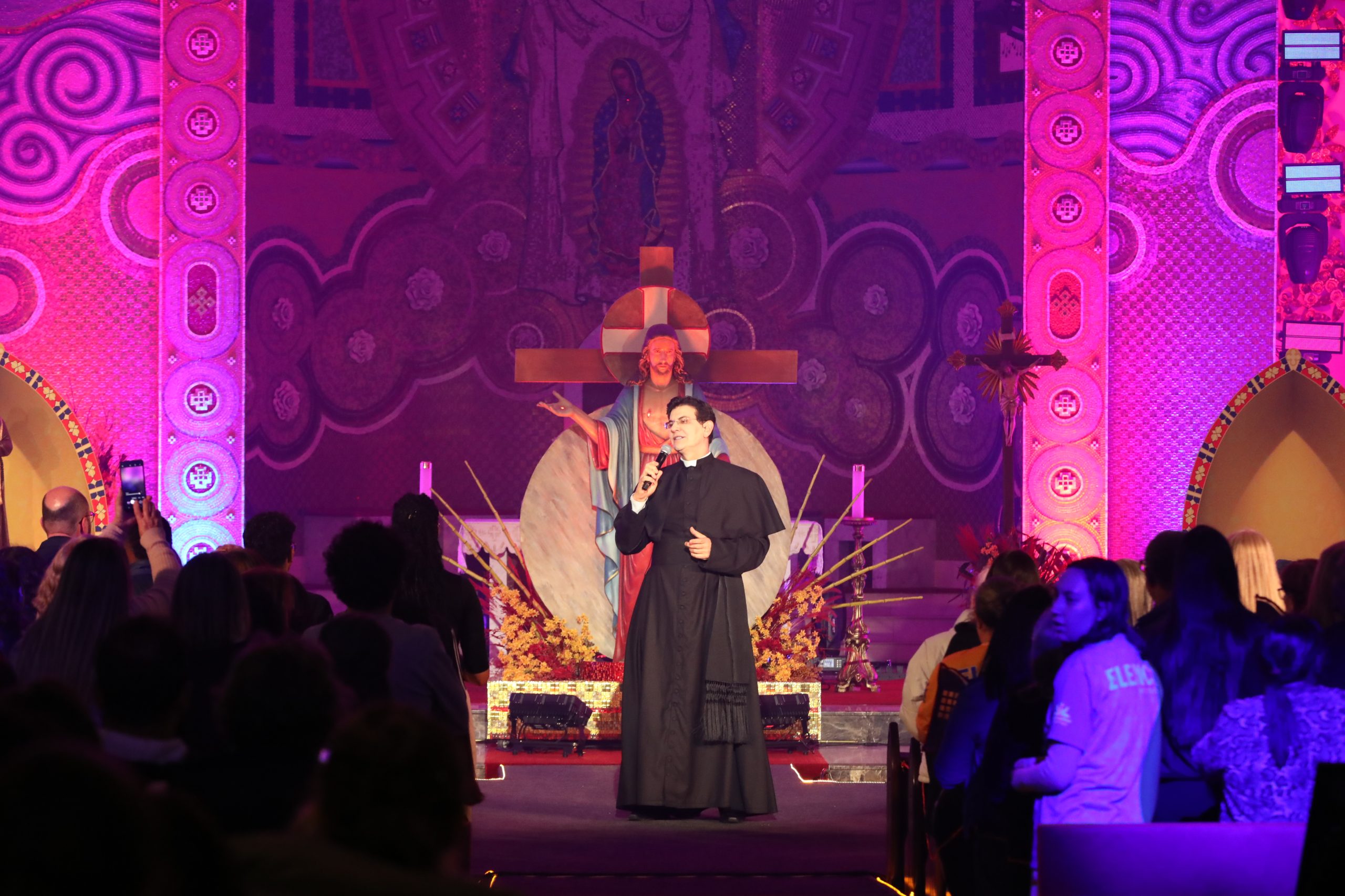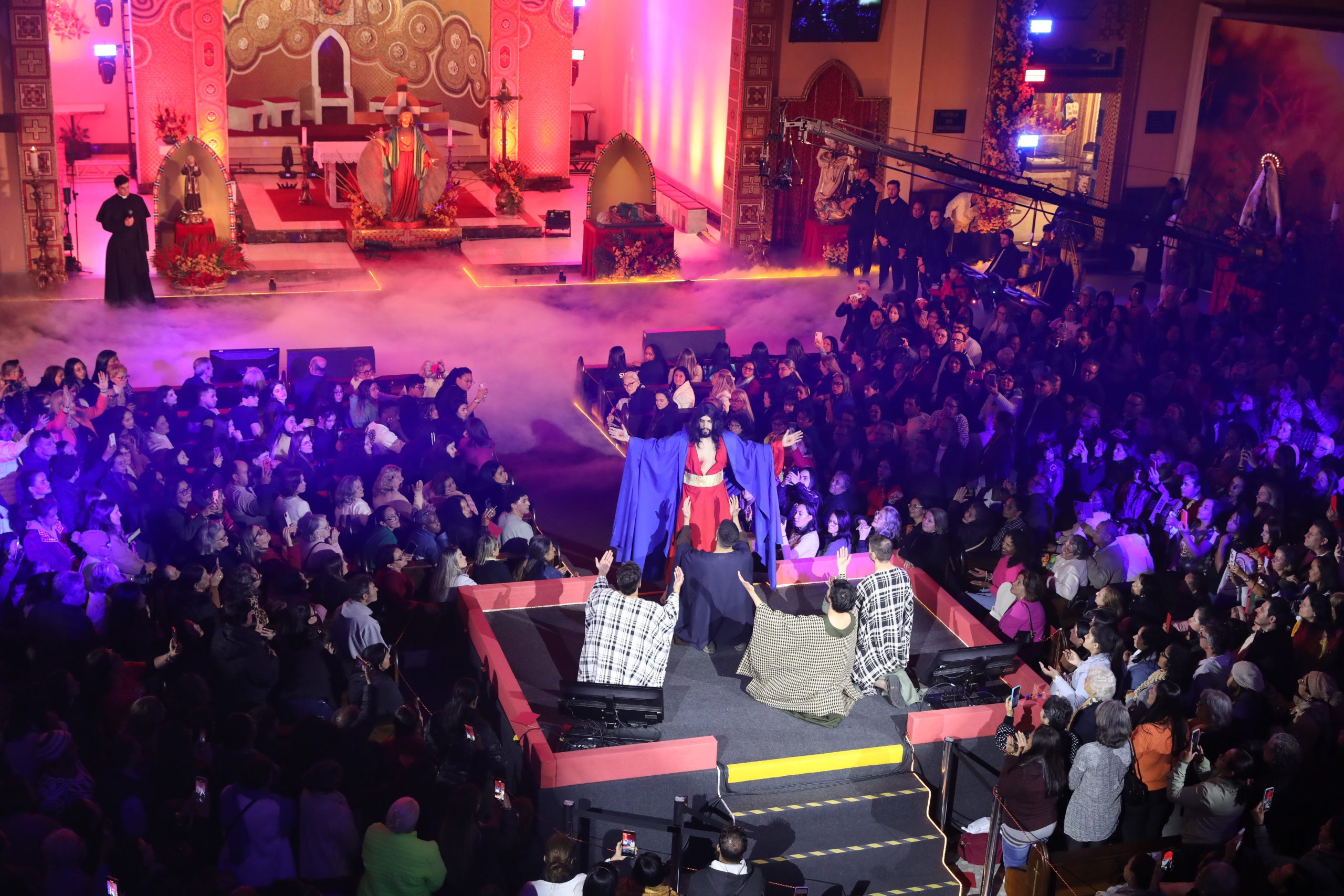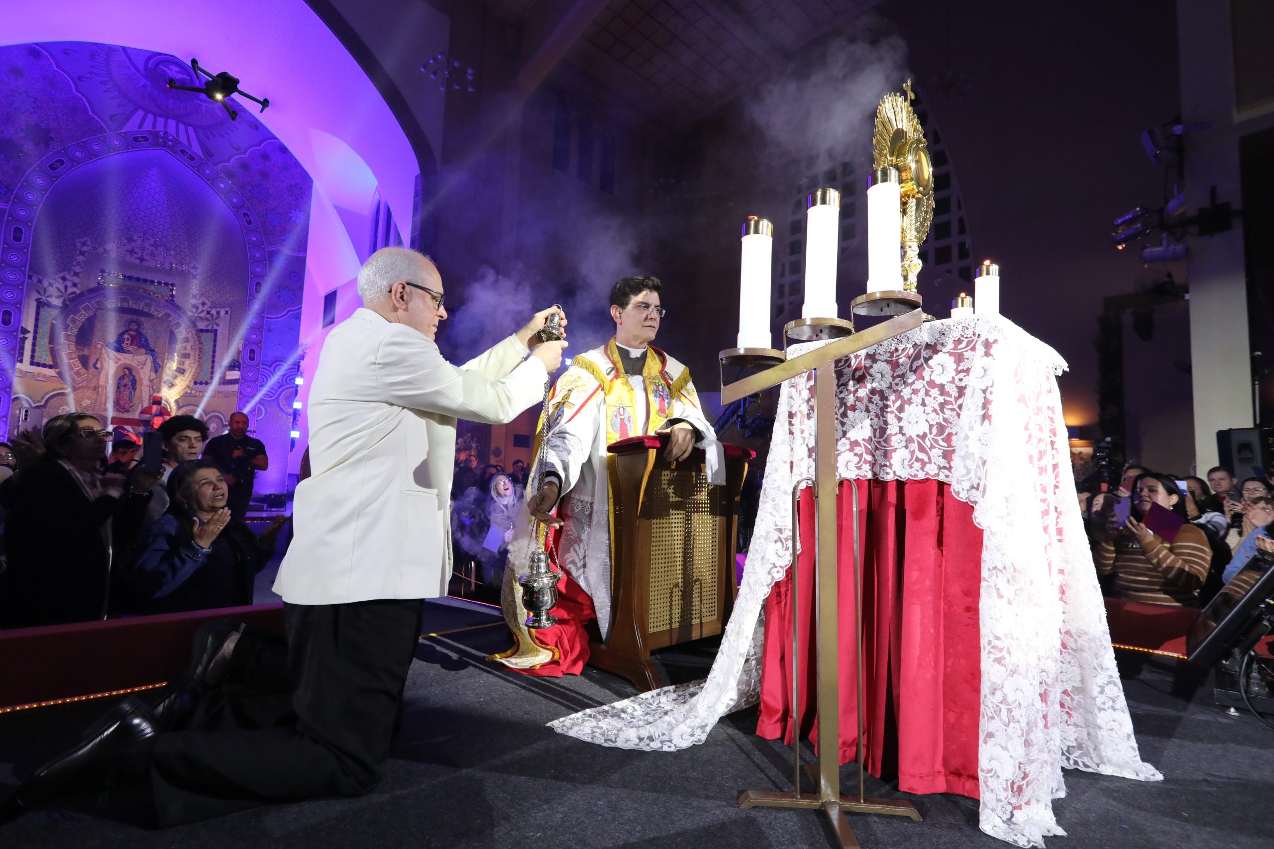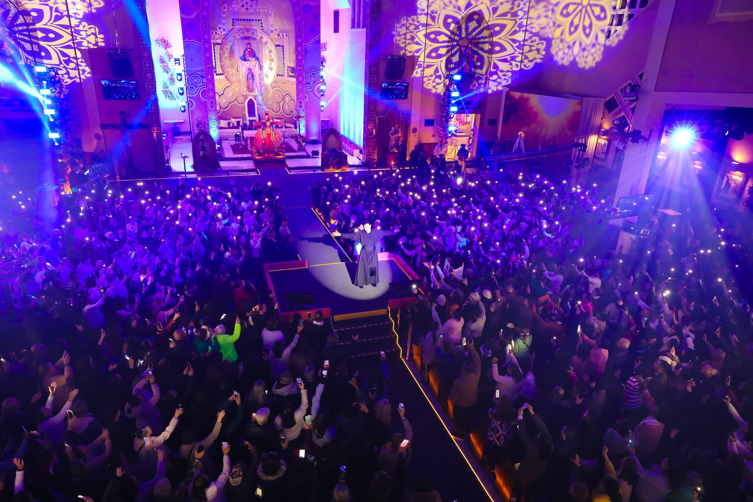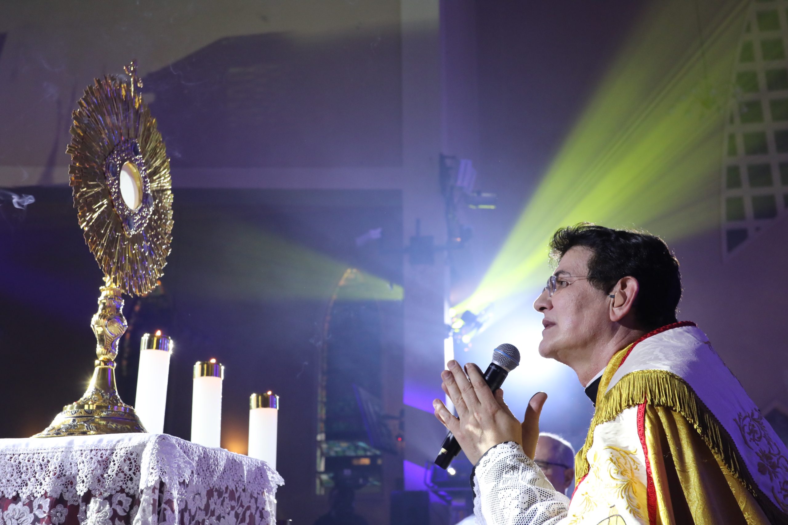 Padre Reginaldo Manzotti recebeu Frei Renan, Padre Ezequiel Dal Pozzo e Joelma Datovo no seu show desta sexta-feira na X Festa das Santas Chagas. O show marcou o início do Jubileu de 20 anos da Associação Evangelizar É Preciso.