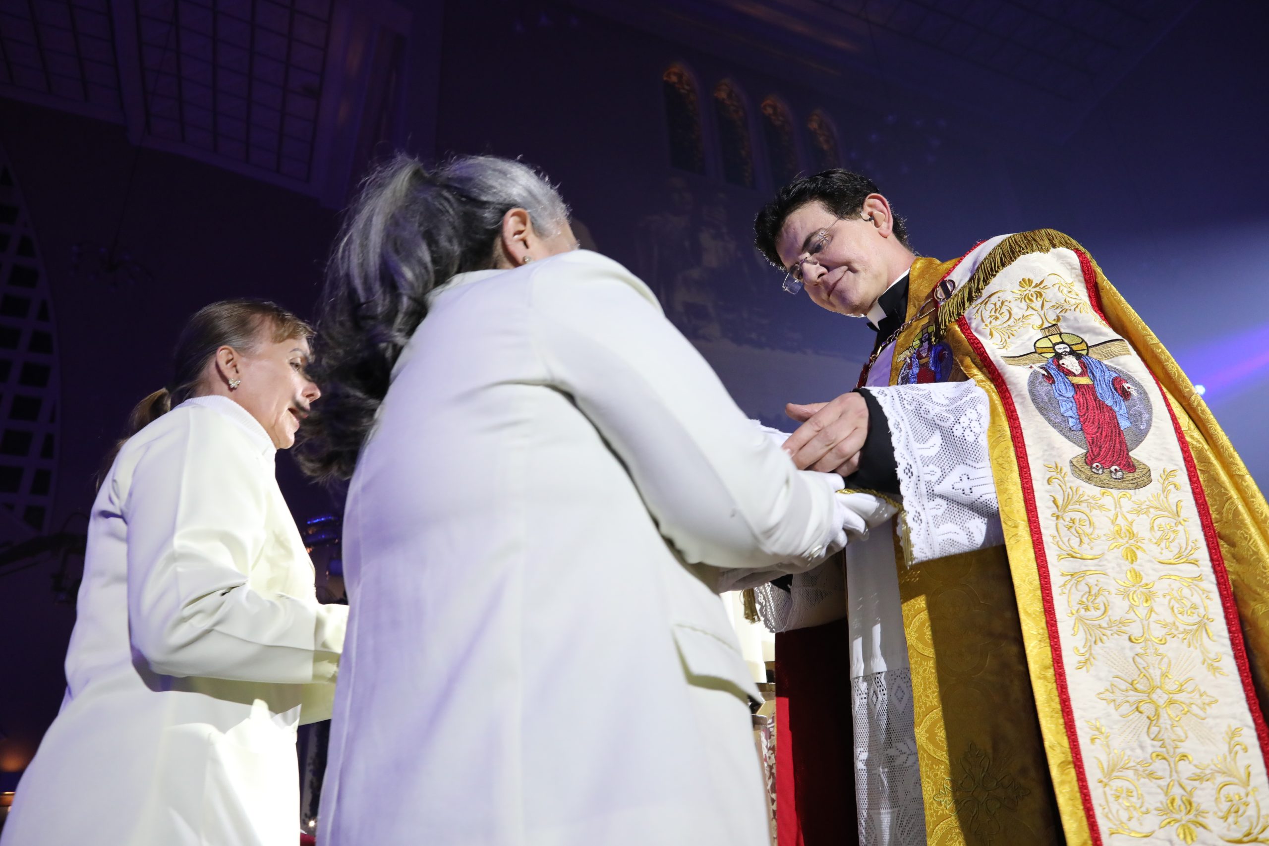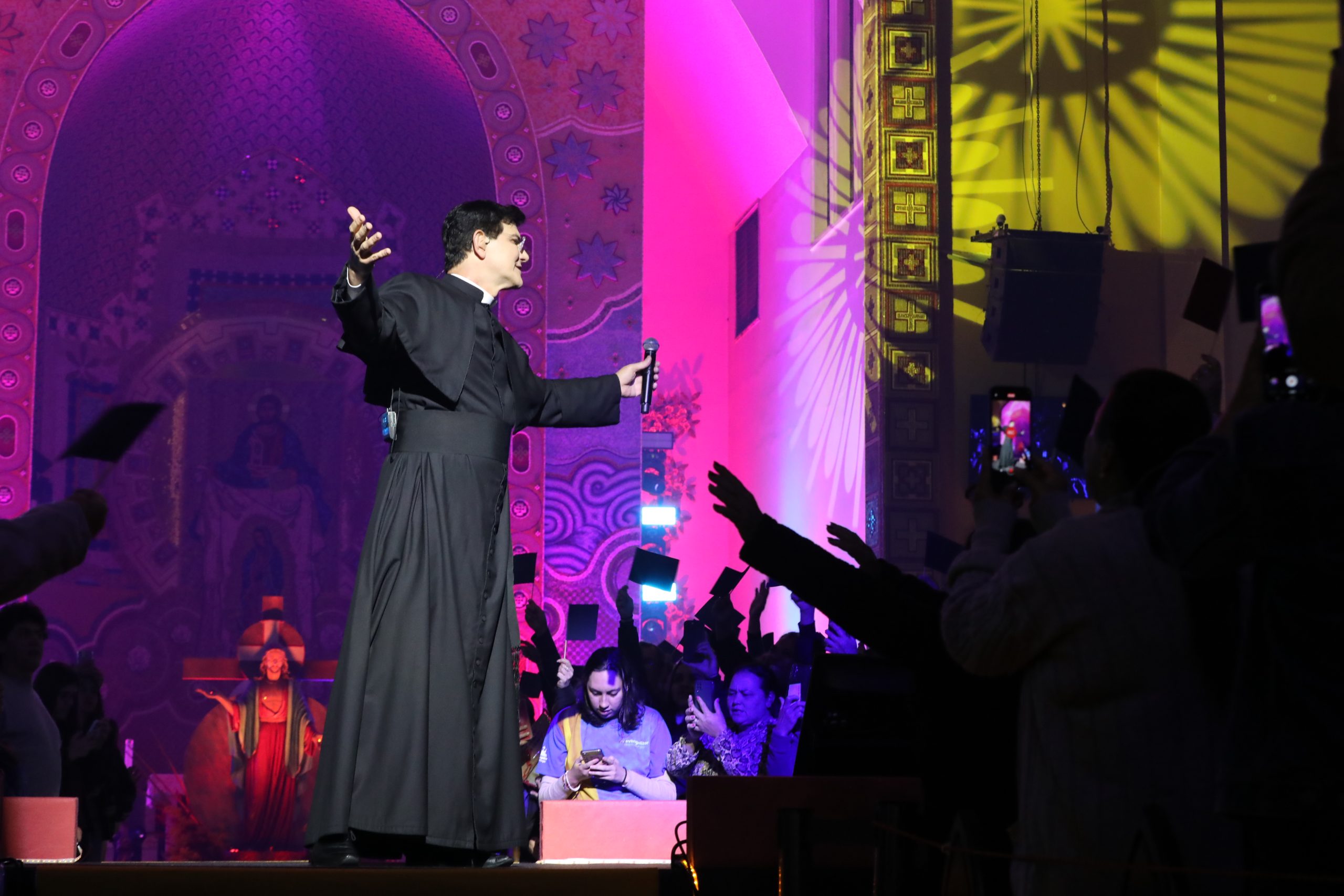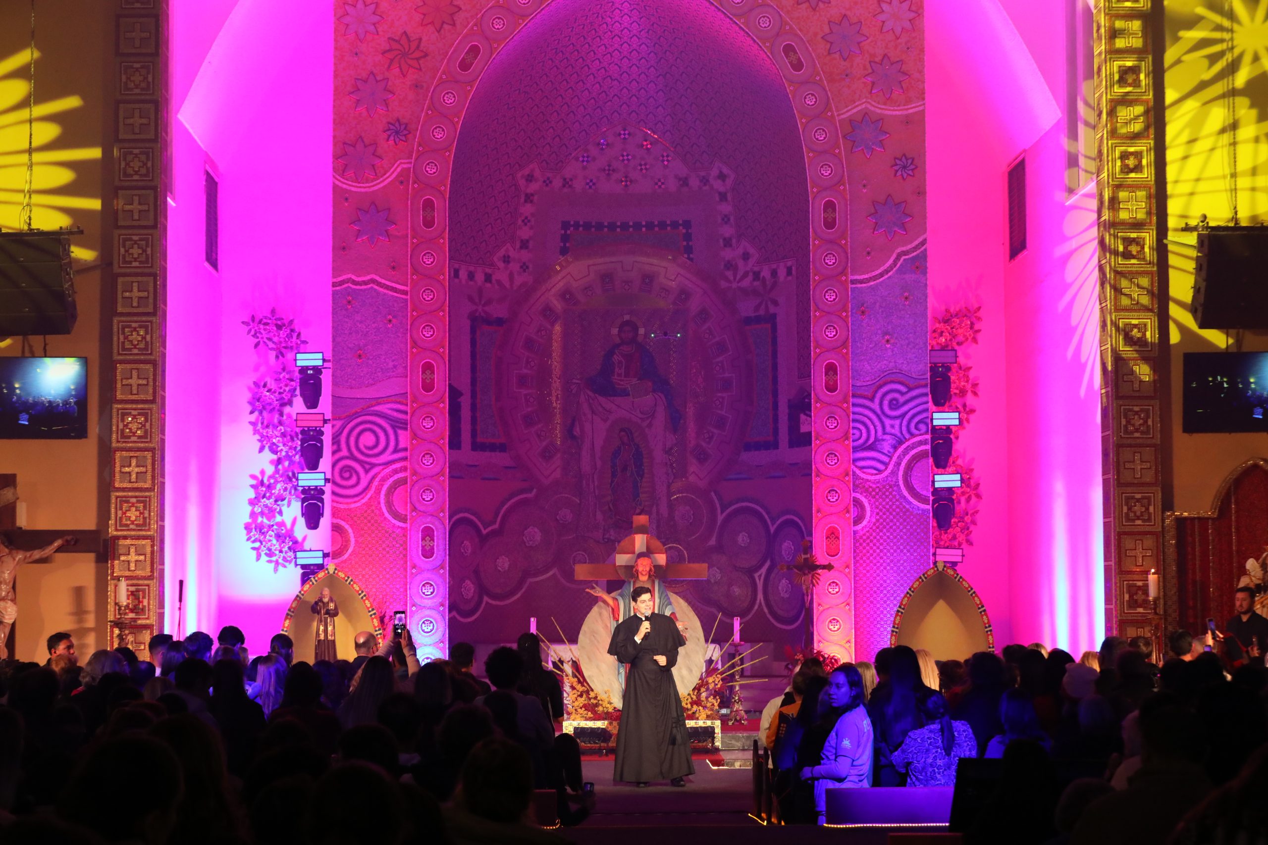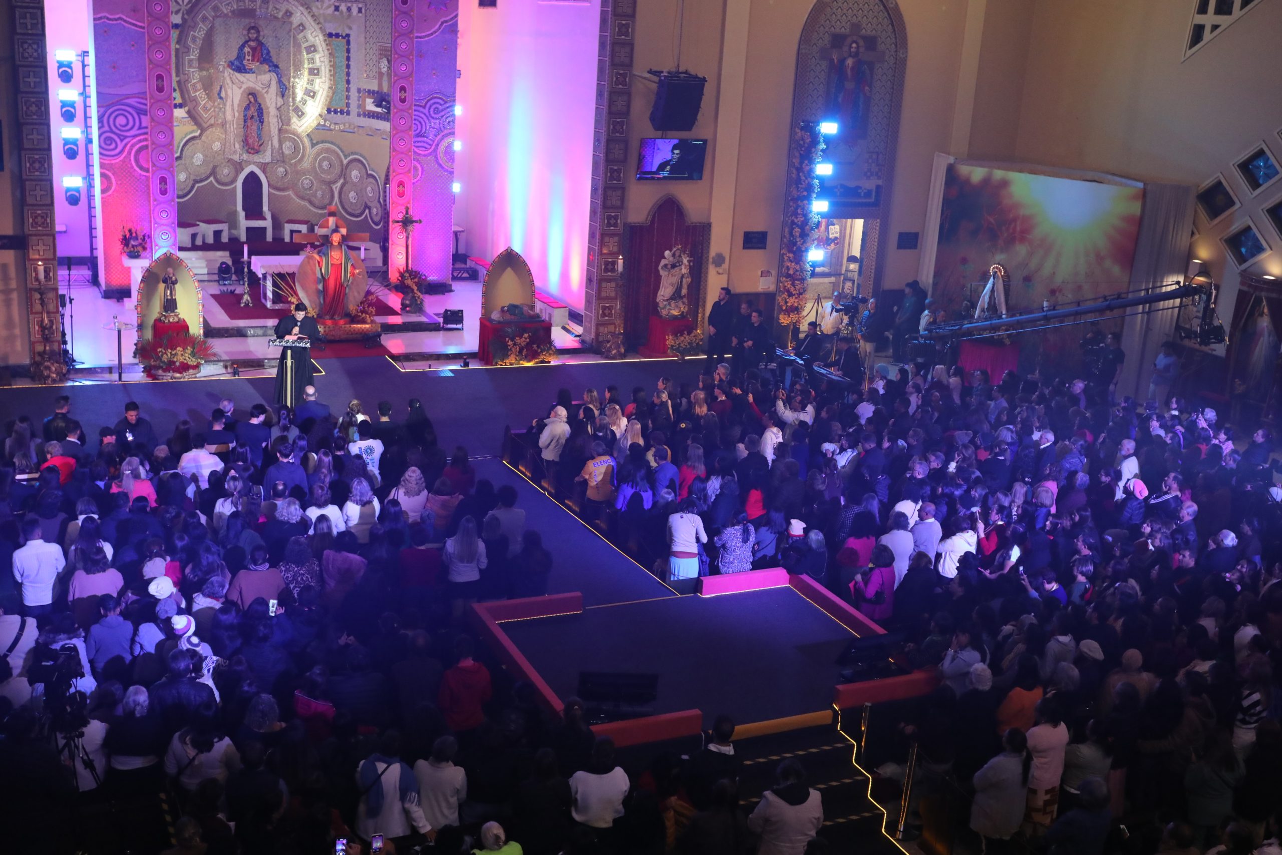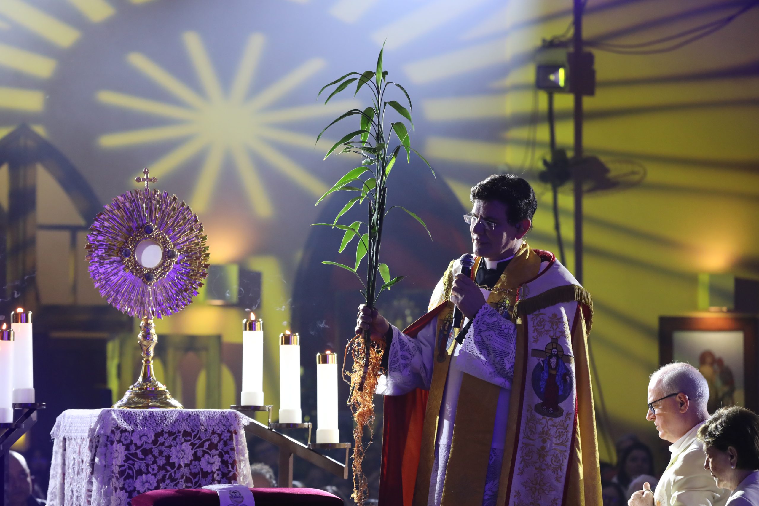 Padre Reginaldo Manzotti recebeu Frei Renan, Padre Ezequiel Dal Pozzo e Joelma Datovo no seu show desta sexta-feira na X Festa das Santas Chagas. O show marcou o início do Jubileu de 20 anos da Associação Evangelizar É Preciso.