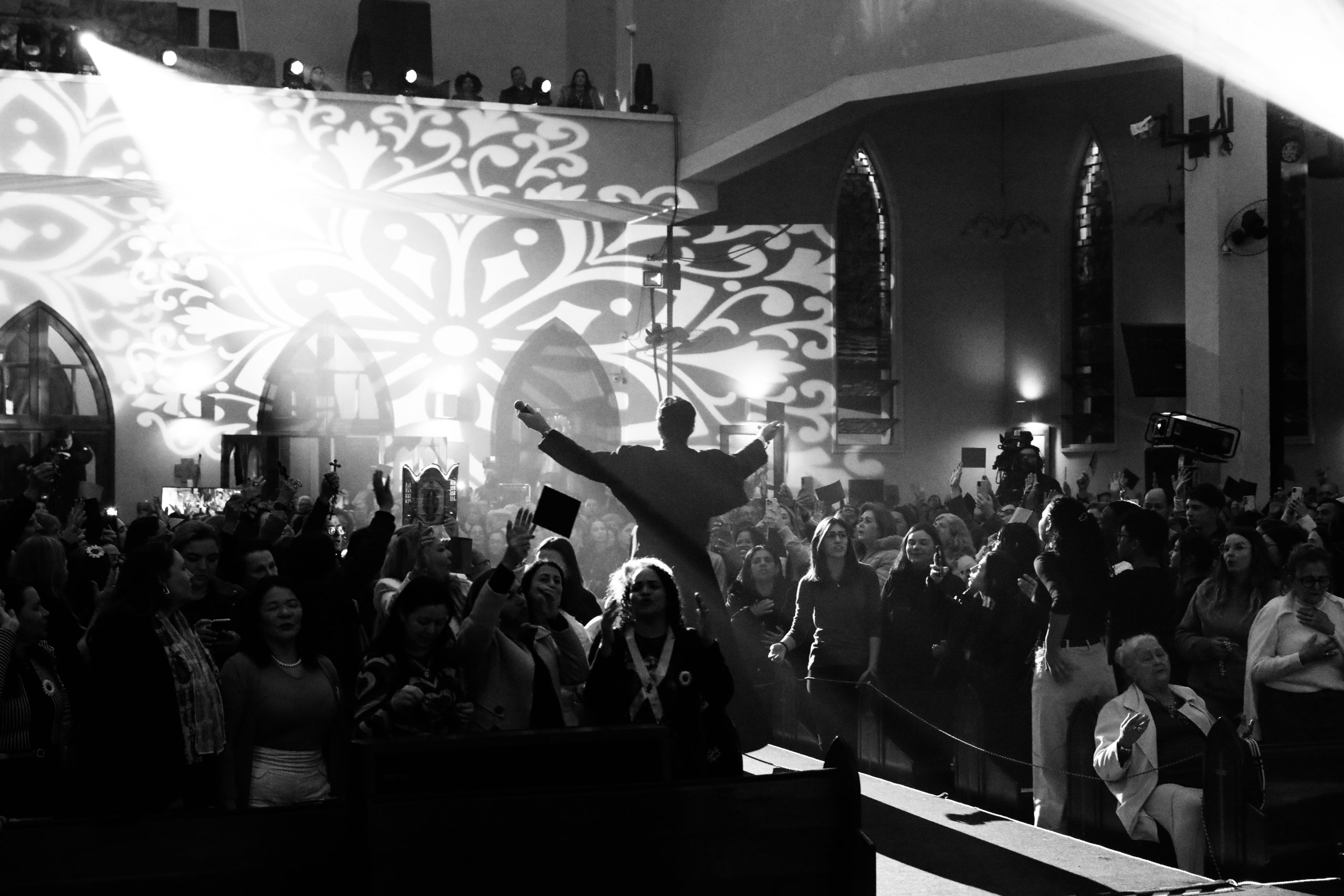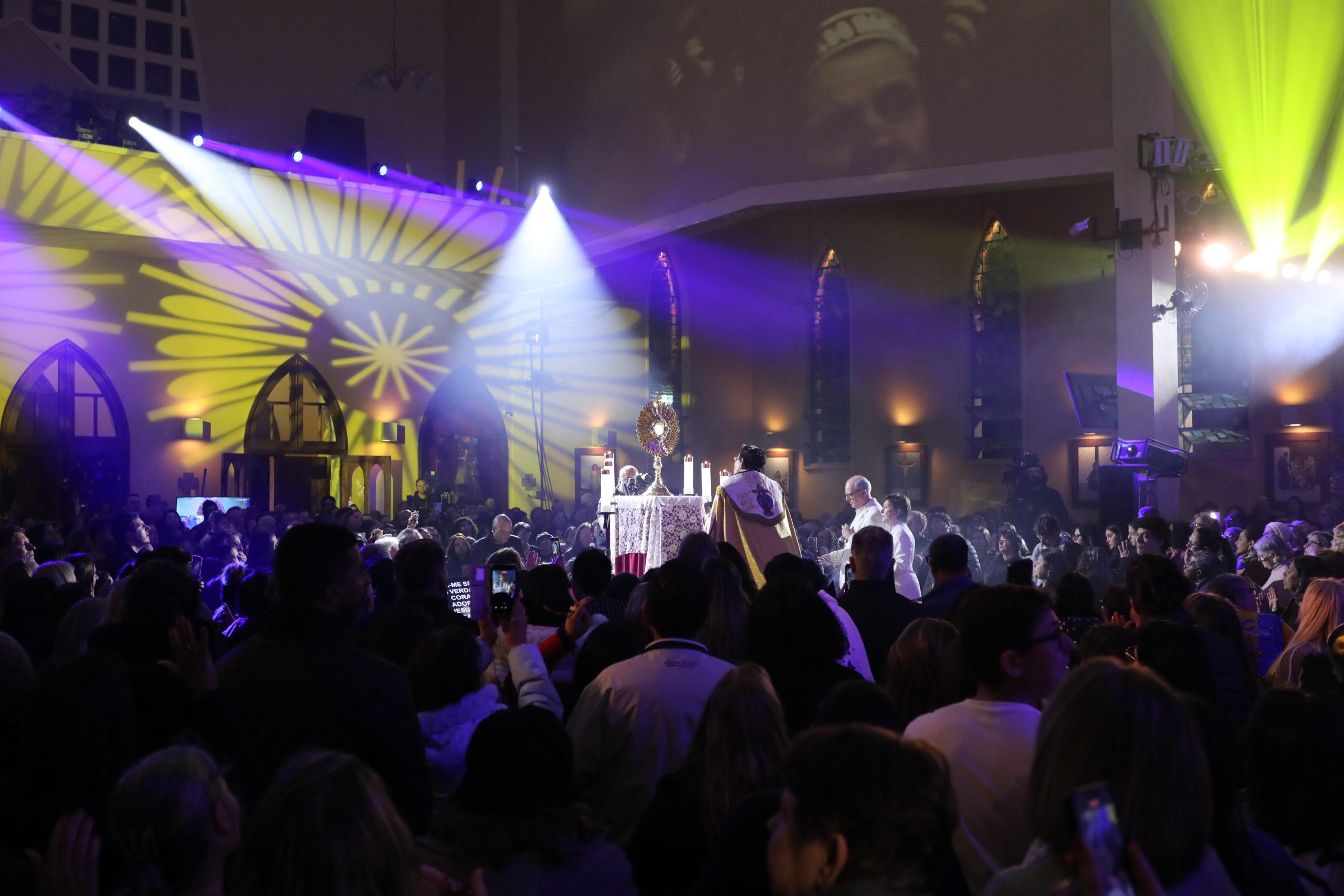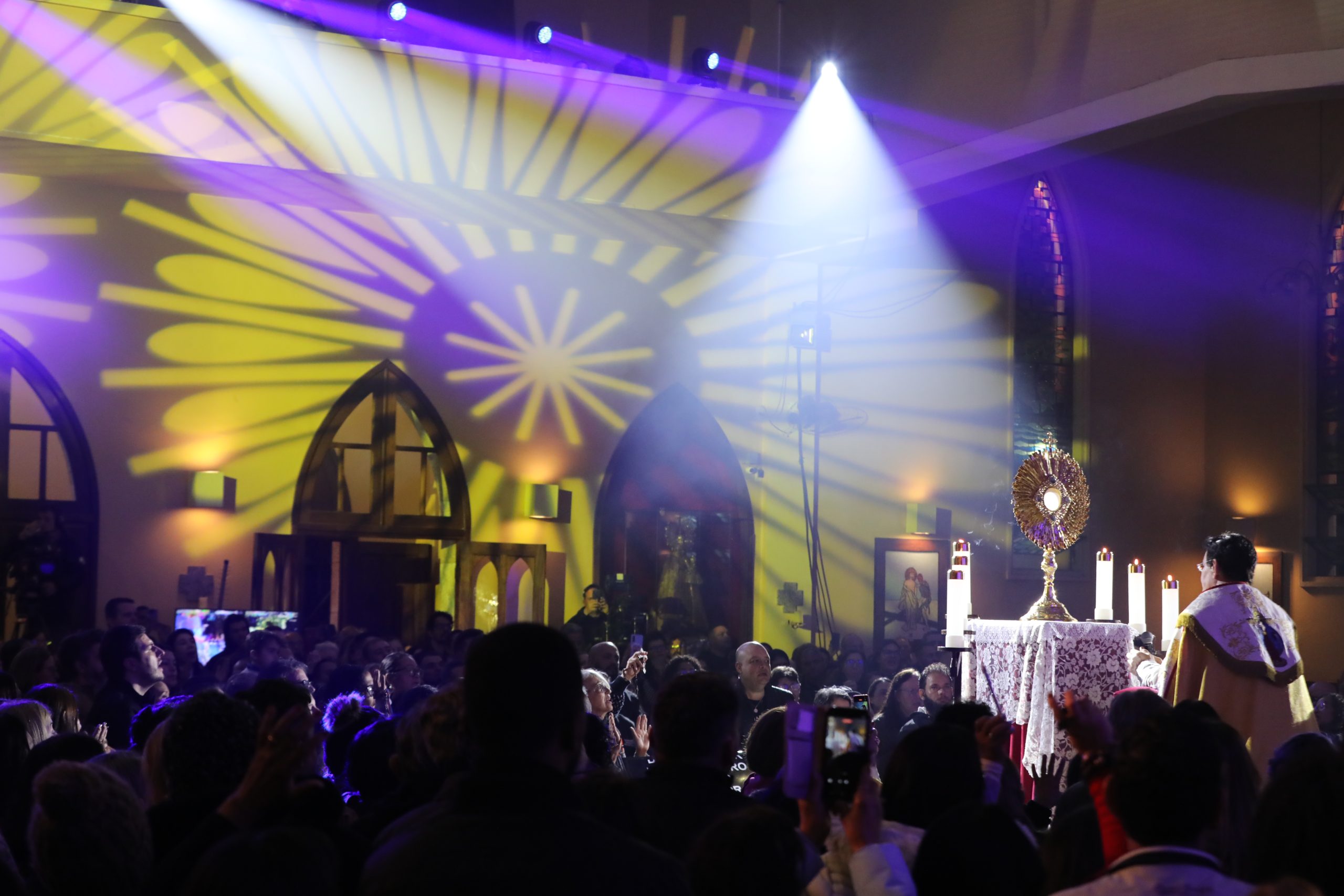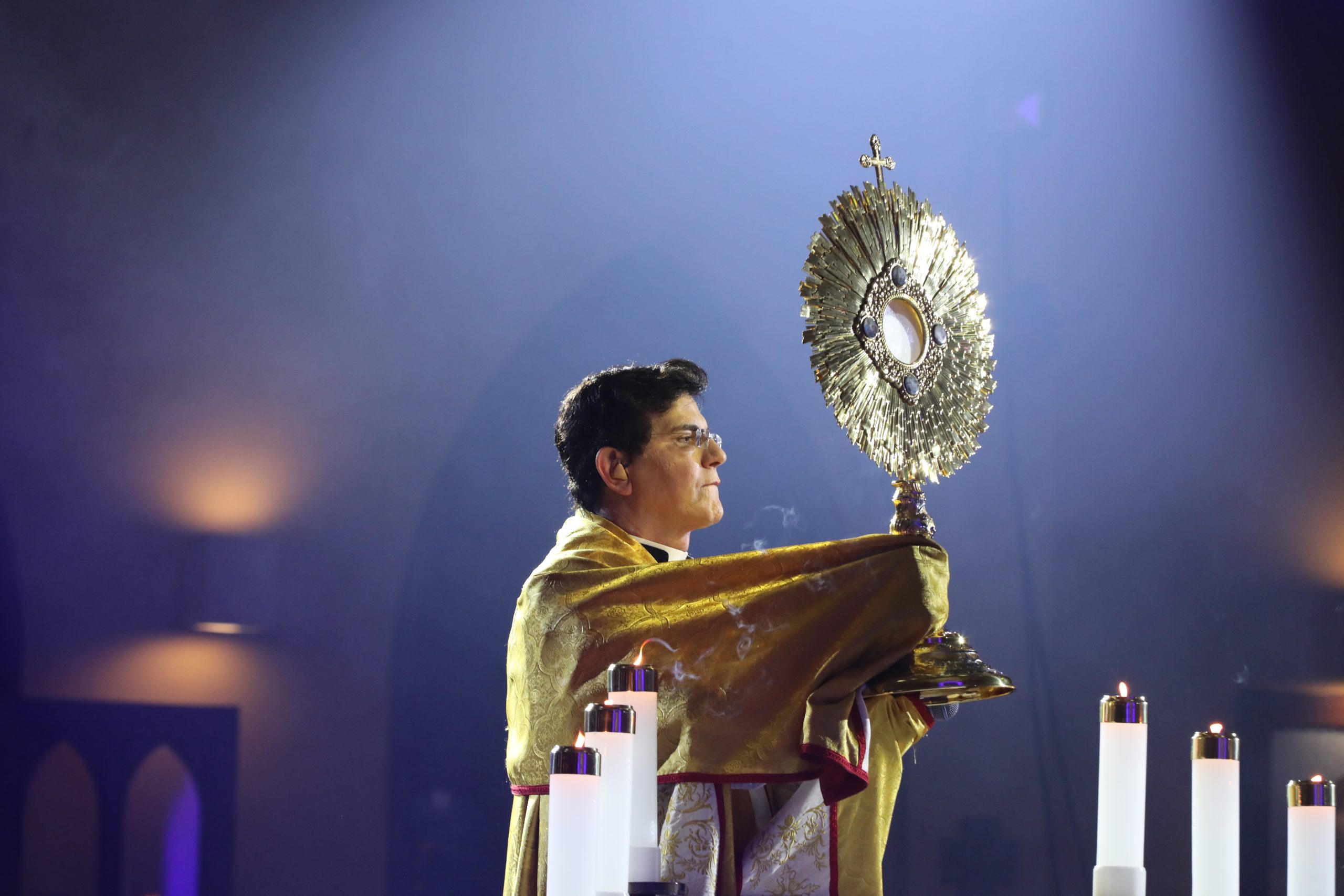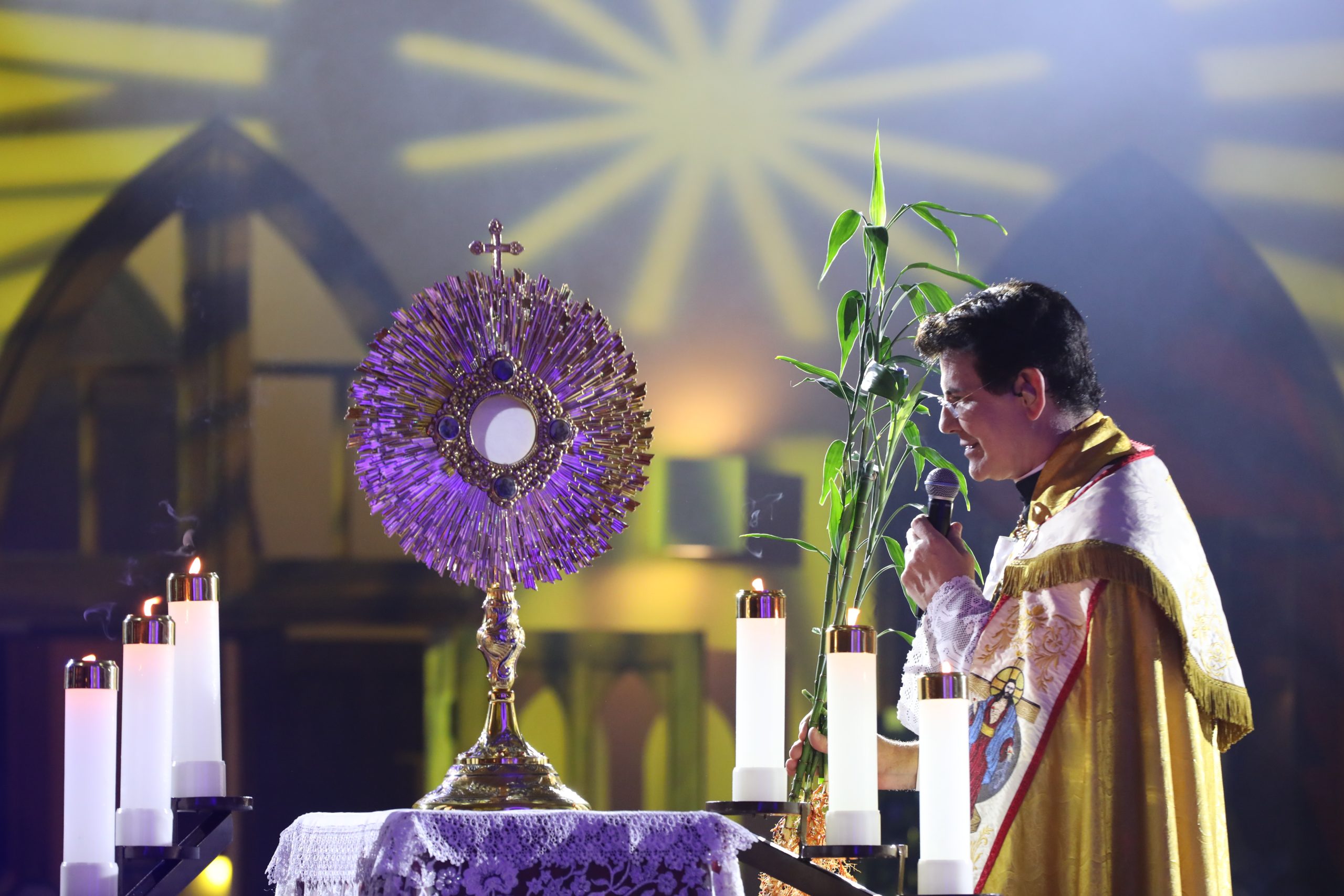 Padre Reginaldo Manzotti recebeu Frei Renan, Padre Ezequiel Dal Pozzo e Joelma Datovo no seu show desta sexta-feira na X Festa das Santas Chagas. O show marcou o início do Jubileu de 20 anos da Associação Evangelizar É Preciso.
