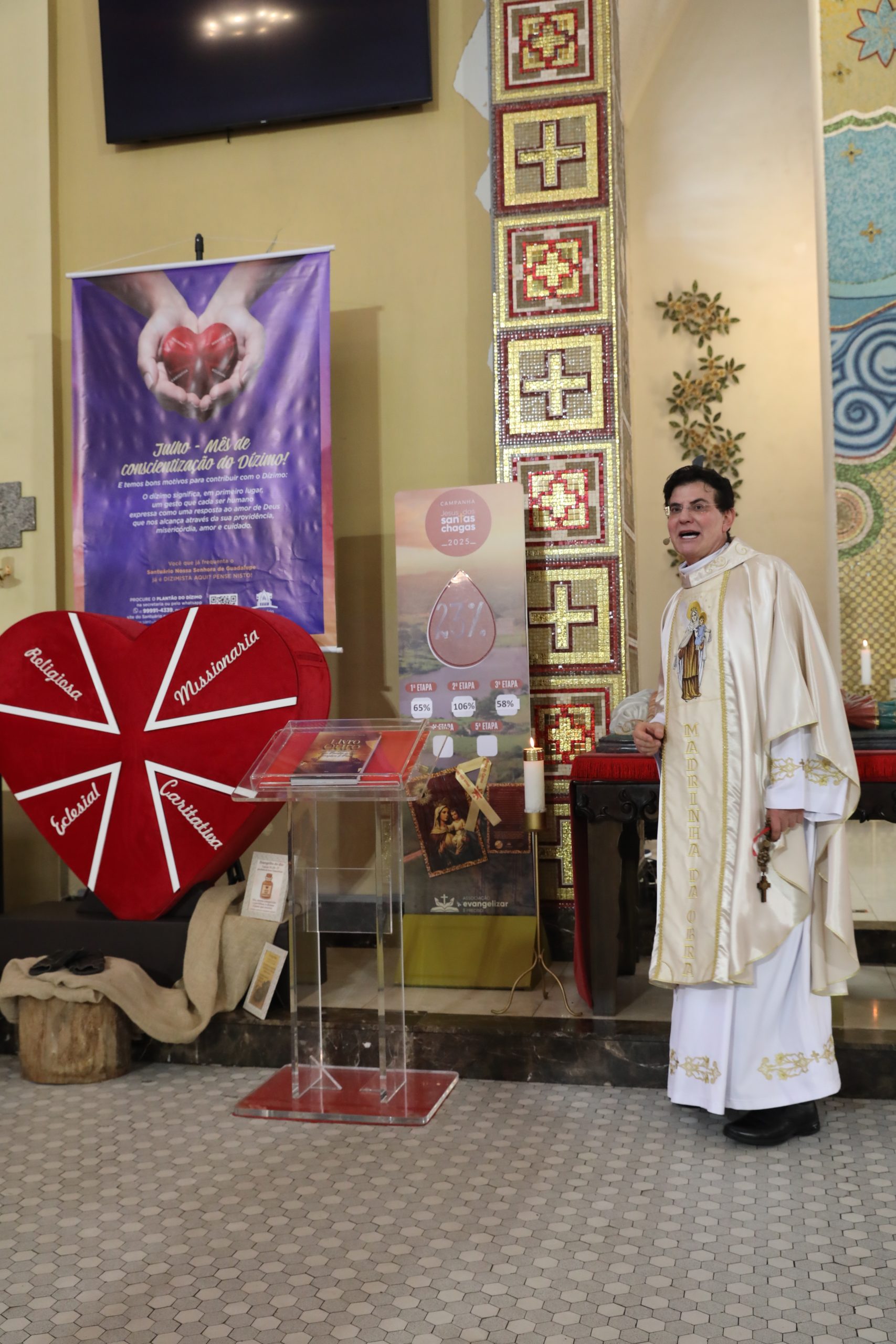 Dia 16 de julho, é comemorado o dia de Nossa Senhora do Carmo. Padre Reginaldo Manzotti presidiu a Santa Missa do meio-dia, em honra a madrinha da obra Evangelizar É Preciso.