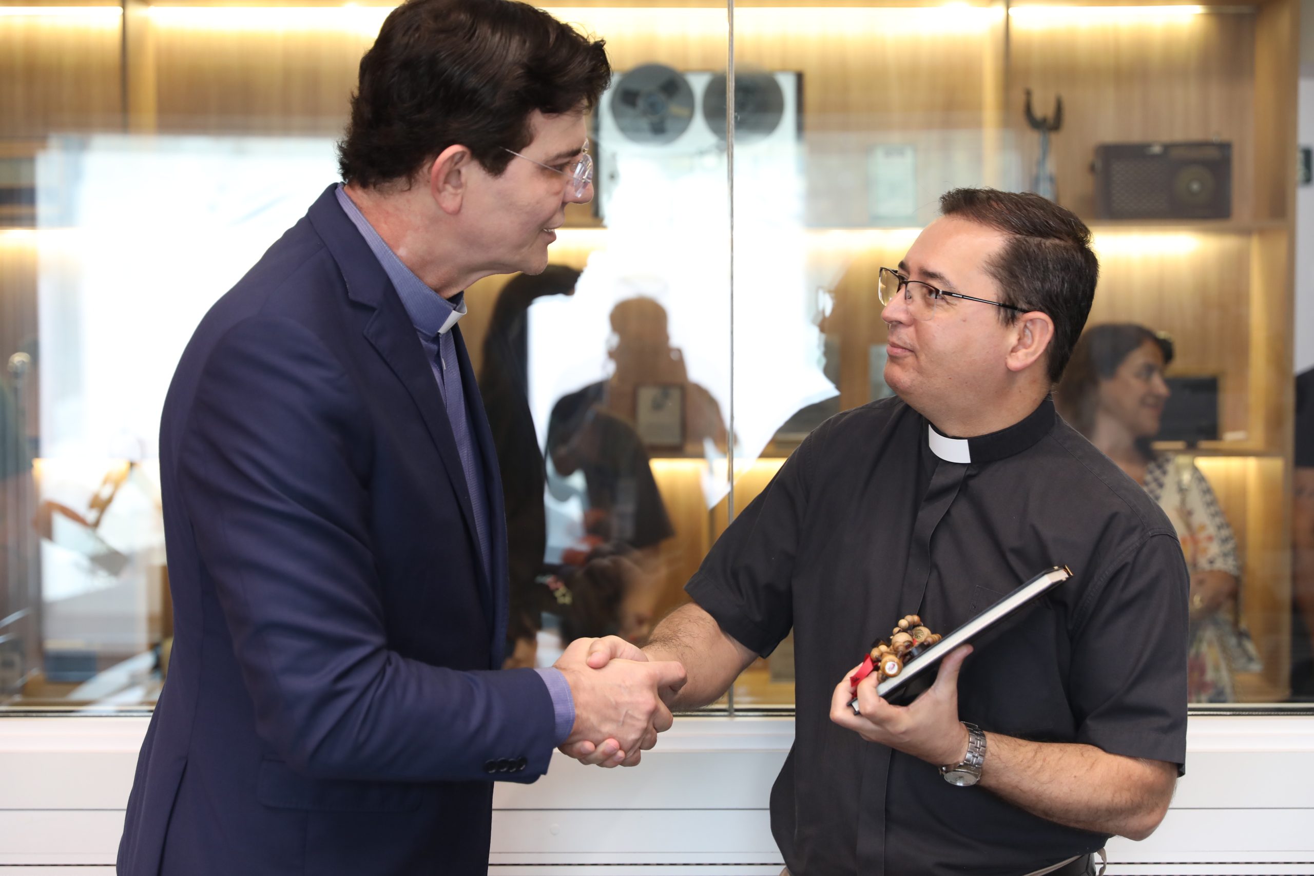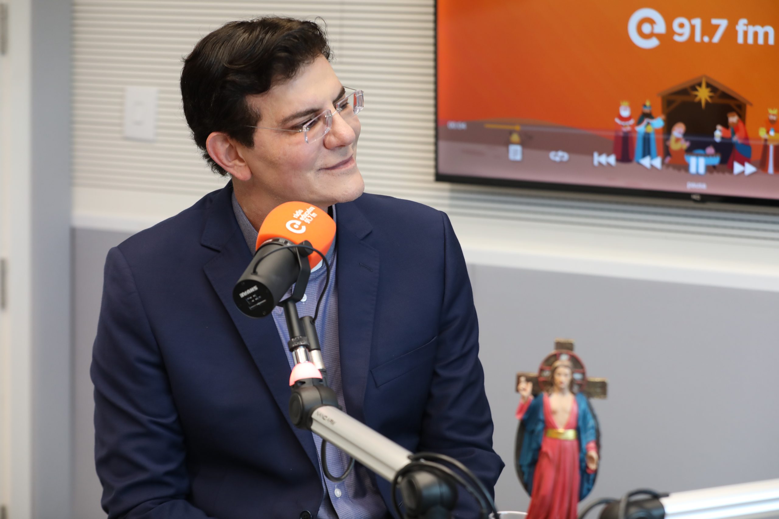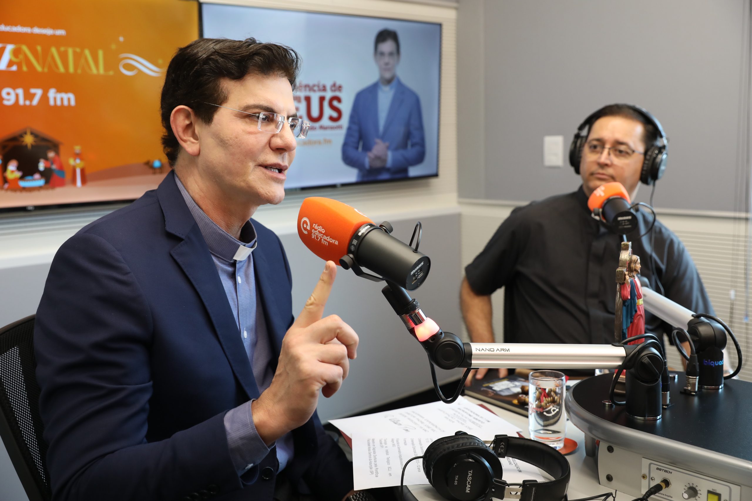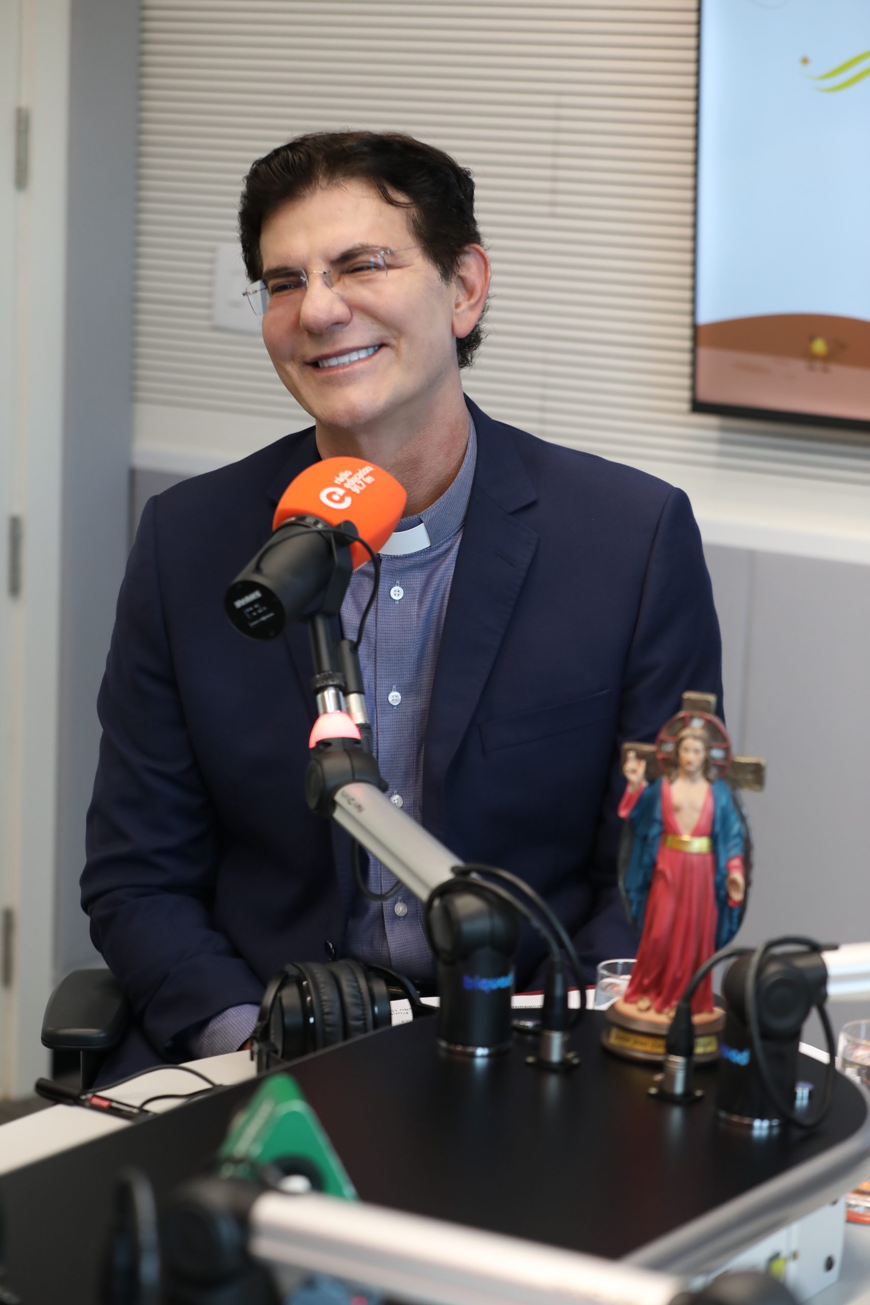 Com um show de evangelização marcado para mais tarde em Coronel Fabriciano, Padre Reginaldo Manzotti visita a rádio Educadora FM 91,7.