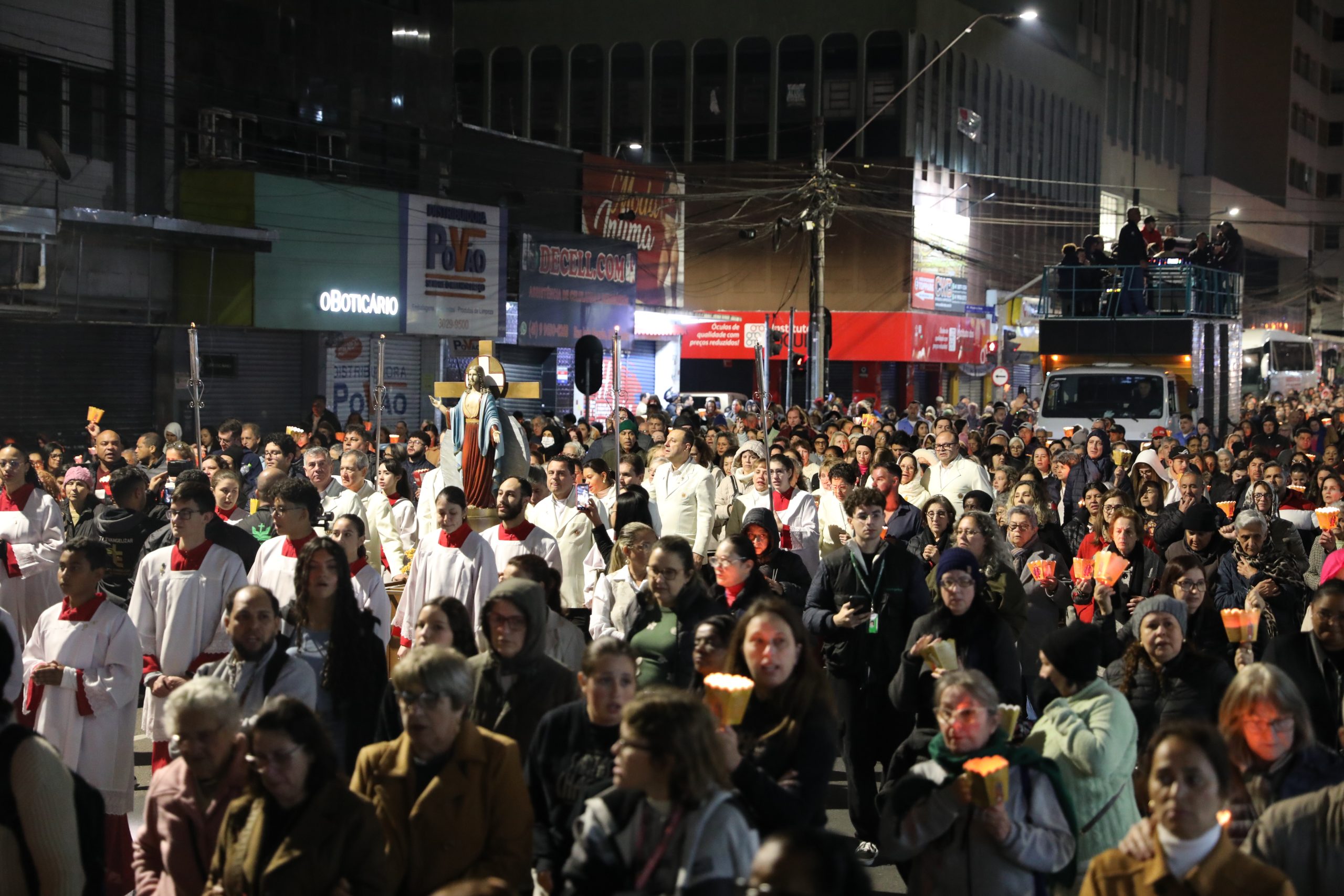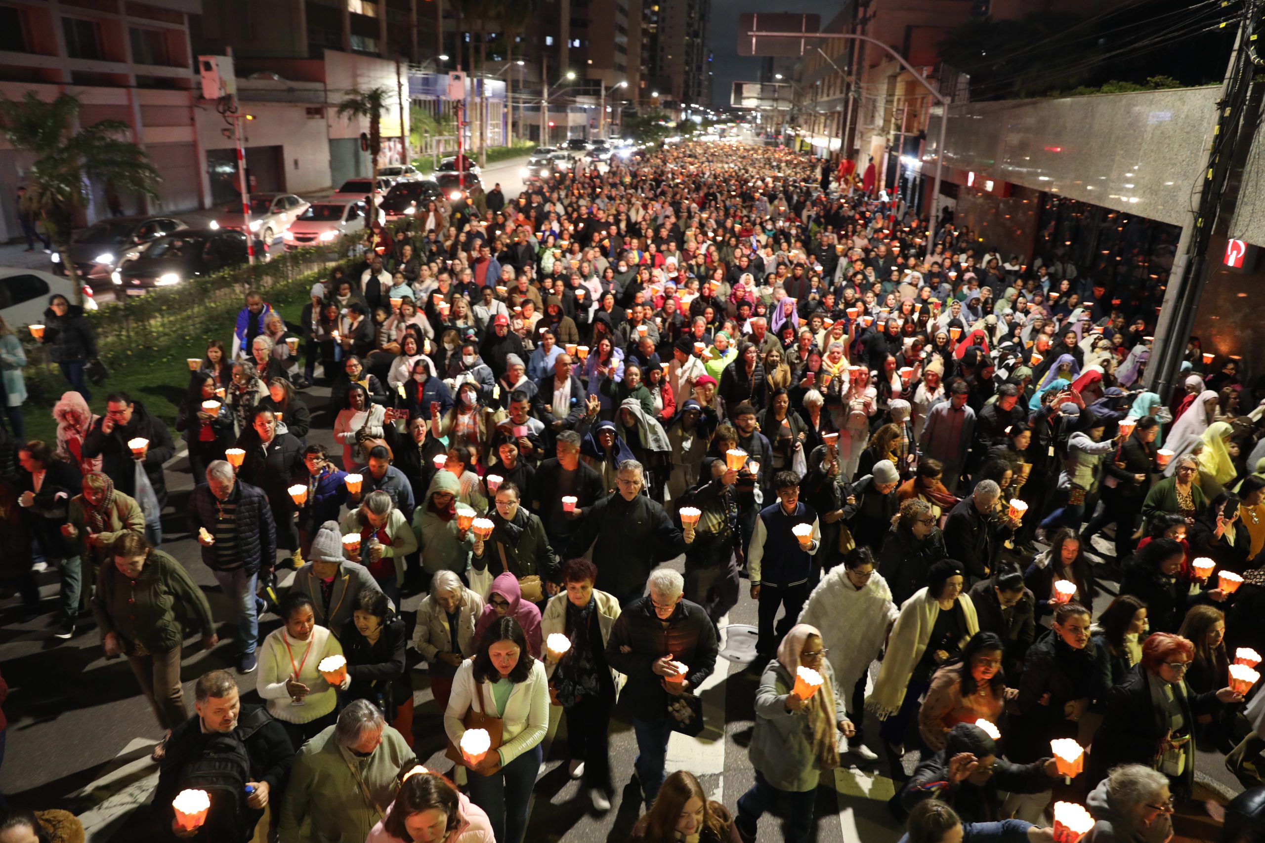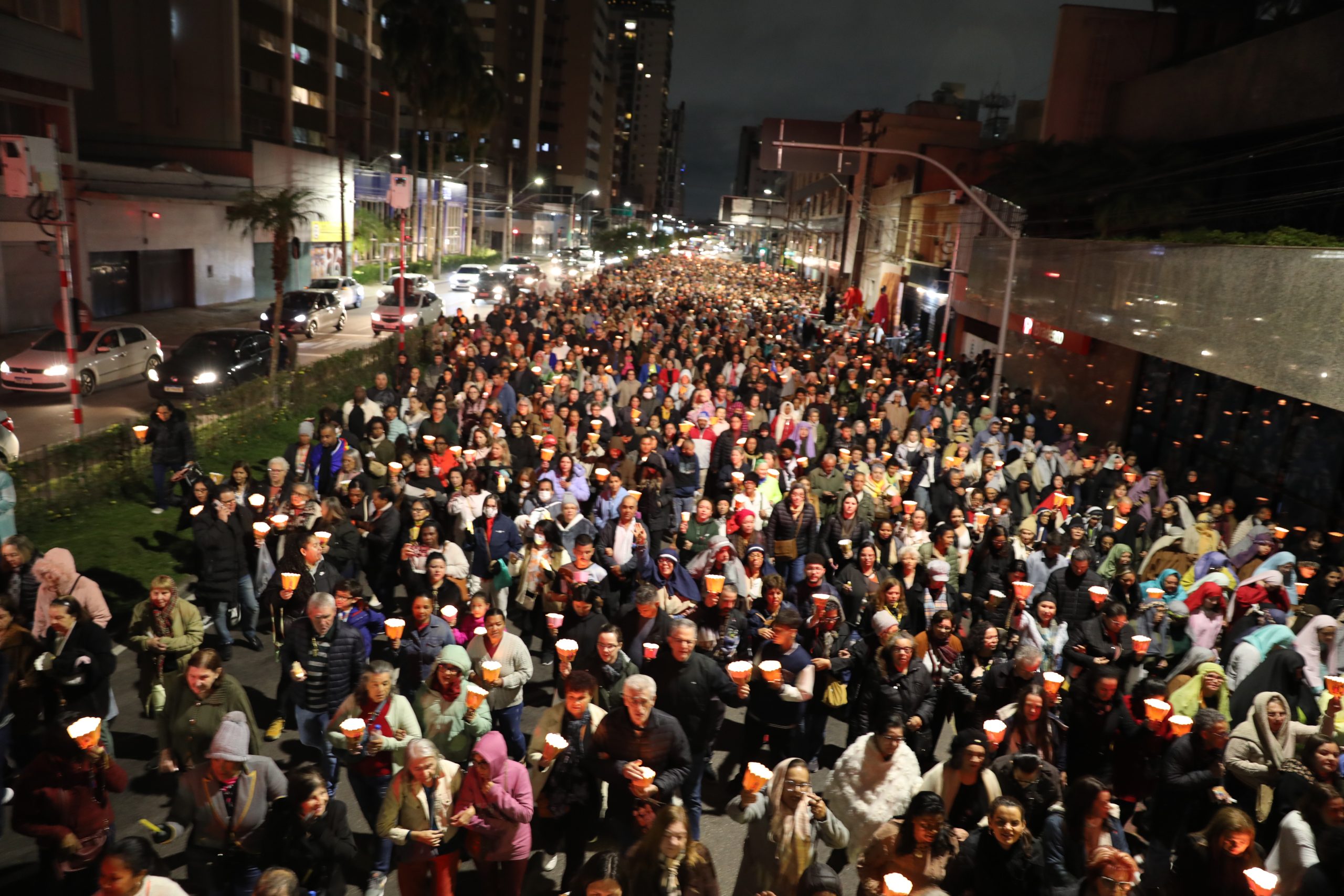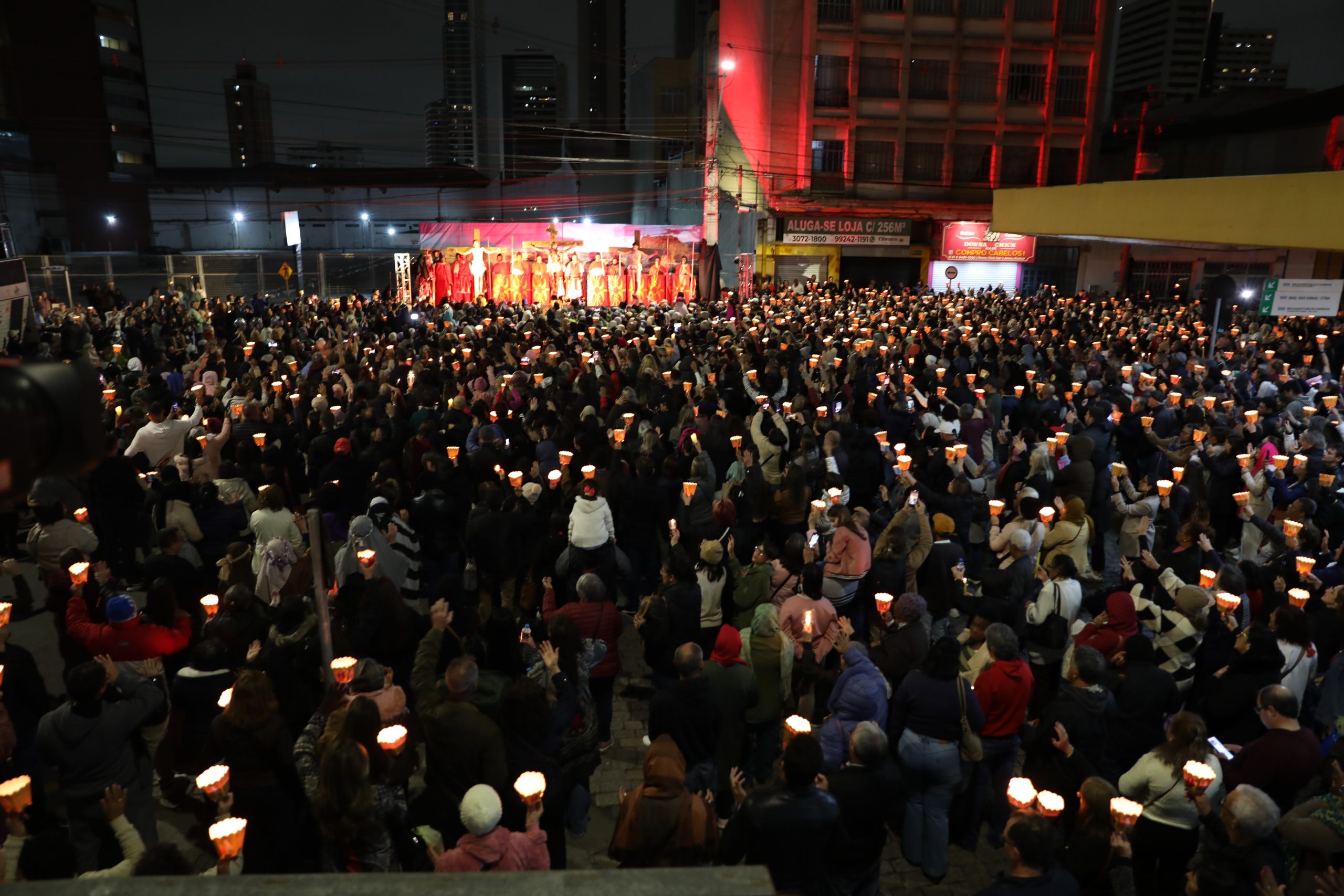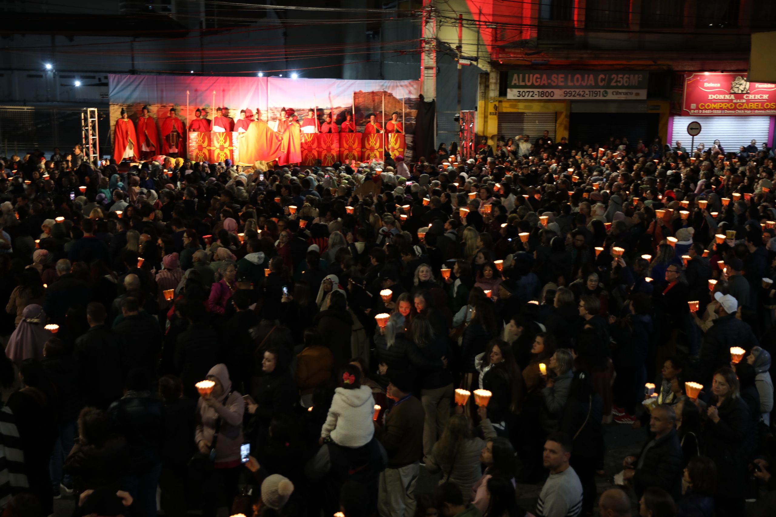 Na noite deste sábado, 27 de setembro, o centro de Curitiba foi palco de um dos momentos mais marcantes da décima edição da Festa de Jesus das Santas Chagas 2025: a tradicional procissão com encenação da Via Sacra, conduzida pelo Padre Reginaldo Manzotti. O evento reuniu milhares de fiéis em oração e reflexão sobre a Paixão, Morte e Ressurreição de Cristo.