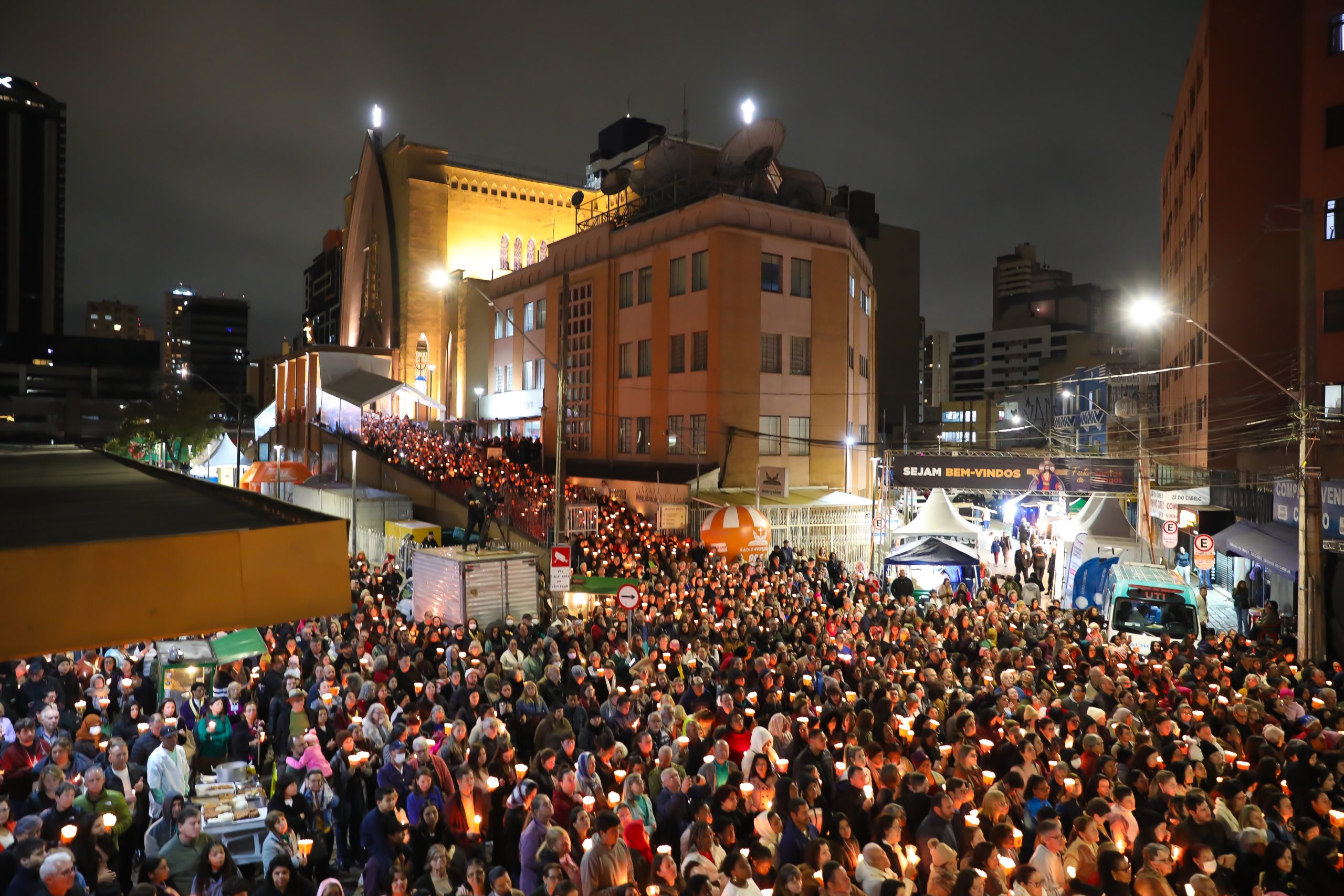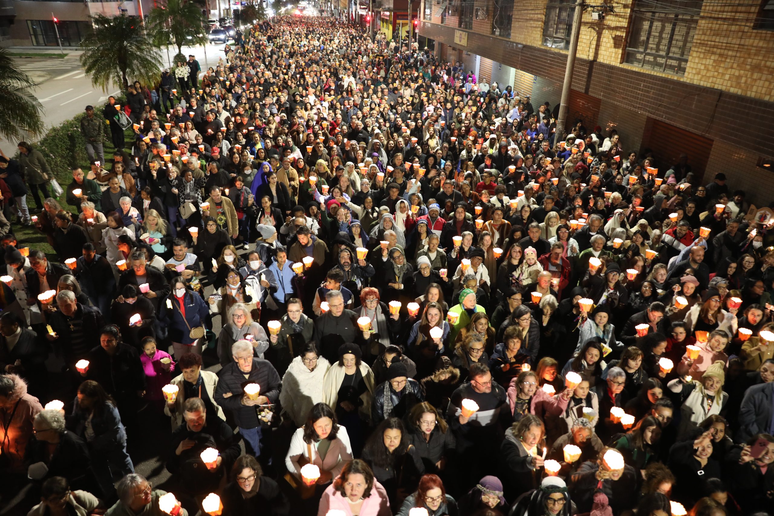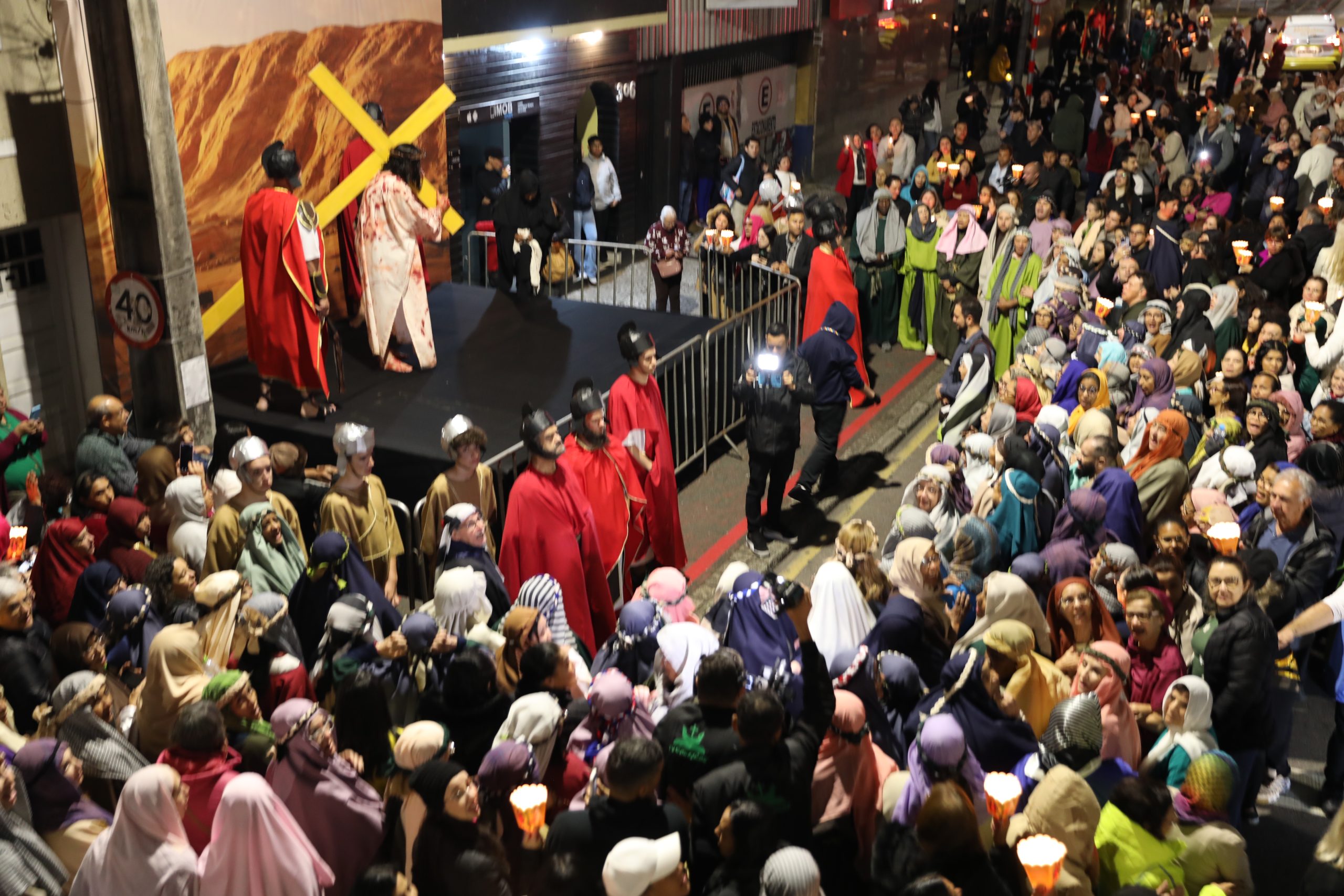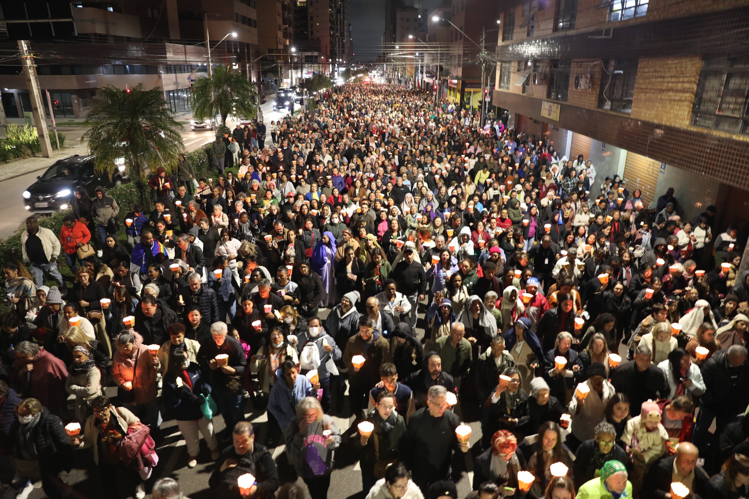 Na noite deste sábado, 27 de setembro, o centro de Curitiba foi palco de um dos momentos mais marcantes da décima edição da Festa de Jesus das Santas Chagas 2025: a tradicional procissão com encenação da Via Sacra, conduzida pelo Padre Reginaldo Manzotti. O evento reuniu milhares de fiéis em oração e reflexão sobre a Paixão, Morte e Ressurreição de Cristo.