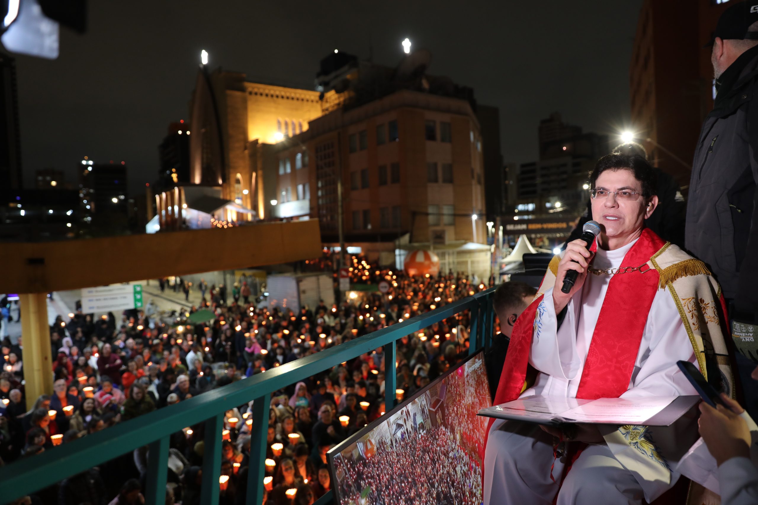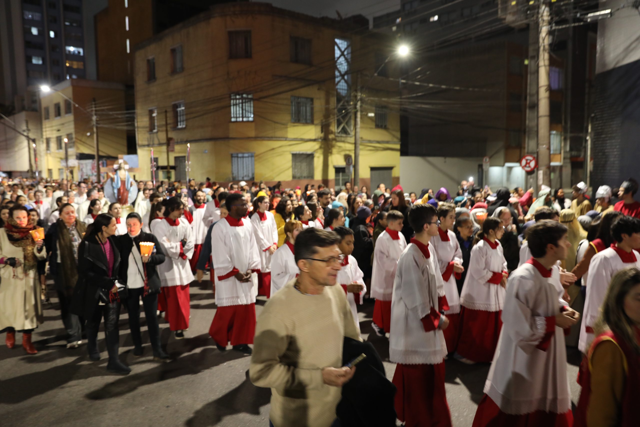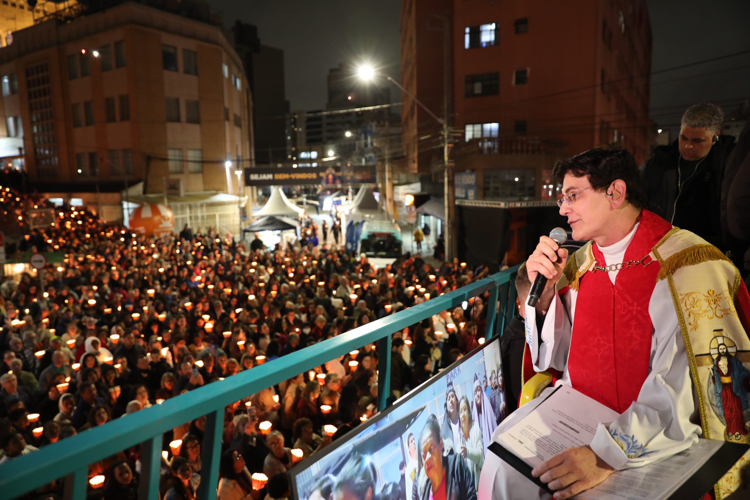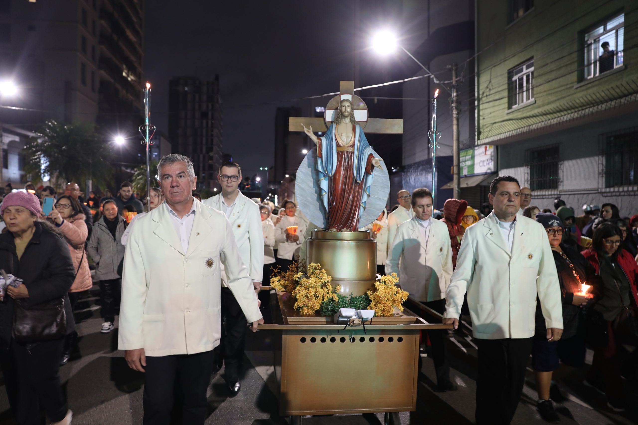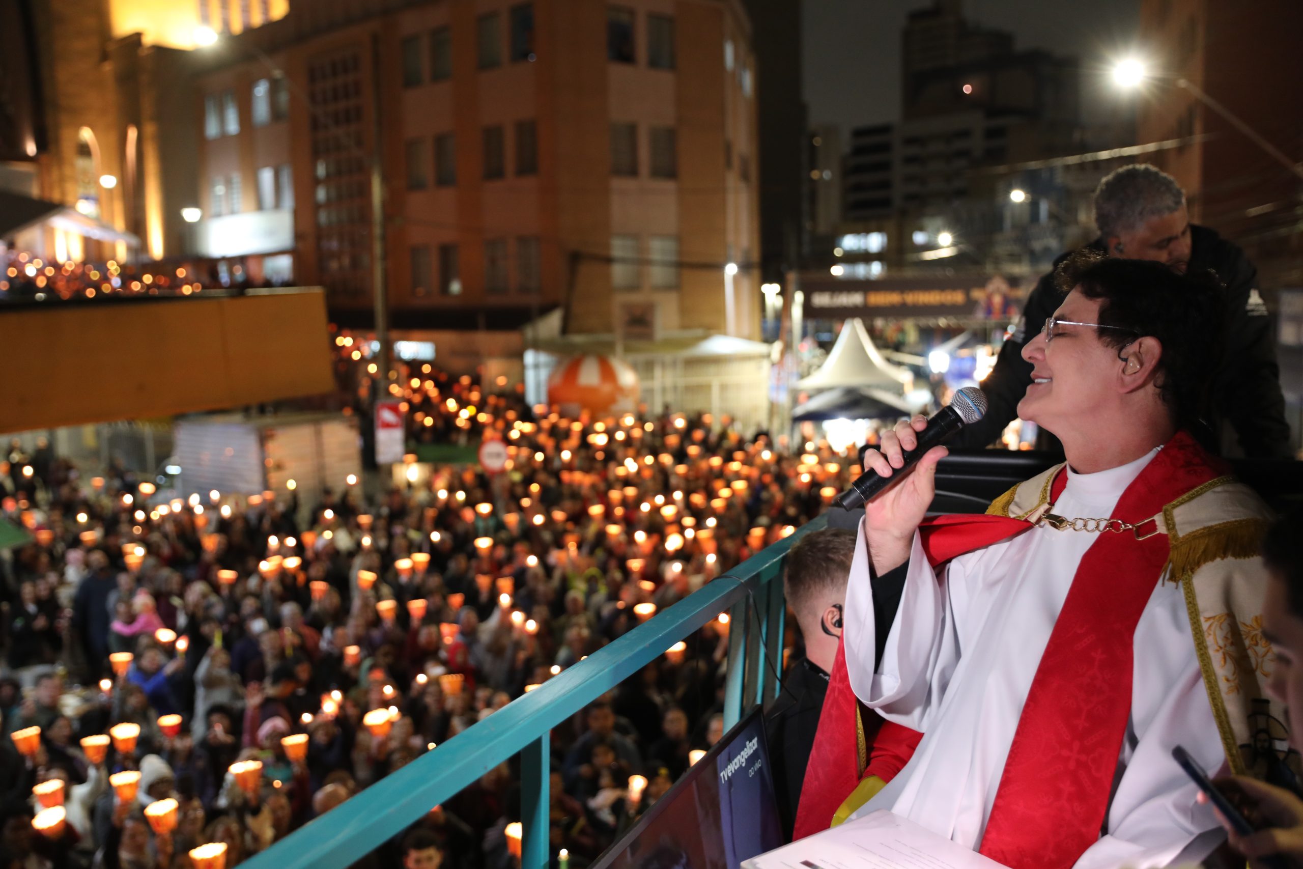 Na noite deste sábado, 27 de setembro, o centro de Curitiba foi palco de um dos momentos mais marcantes da décima edição da Festa de Jesus das Santas Chagas 2025: a tradicional procissão com encenação da Via Sacra, conduzida pelo Padre Reginaldo Manzotti. O evento reuniu milhares de fiéis em oração e reflexão sobre a Paixão, Morte e Ressurreição de Cristo.