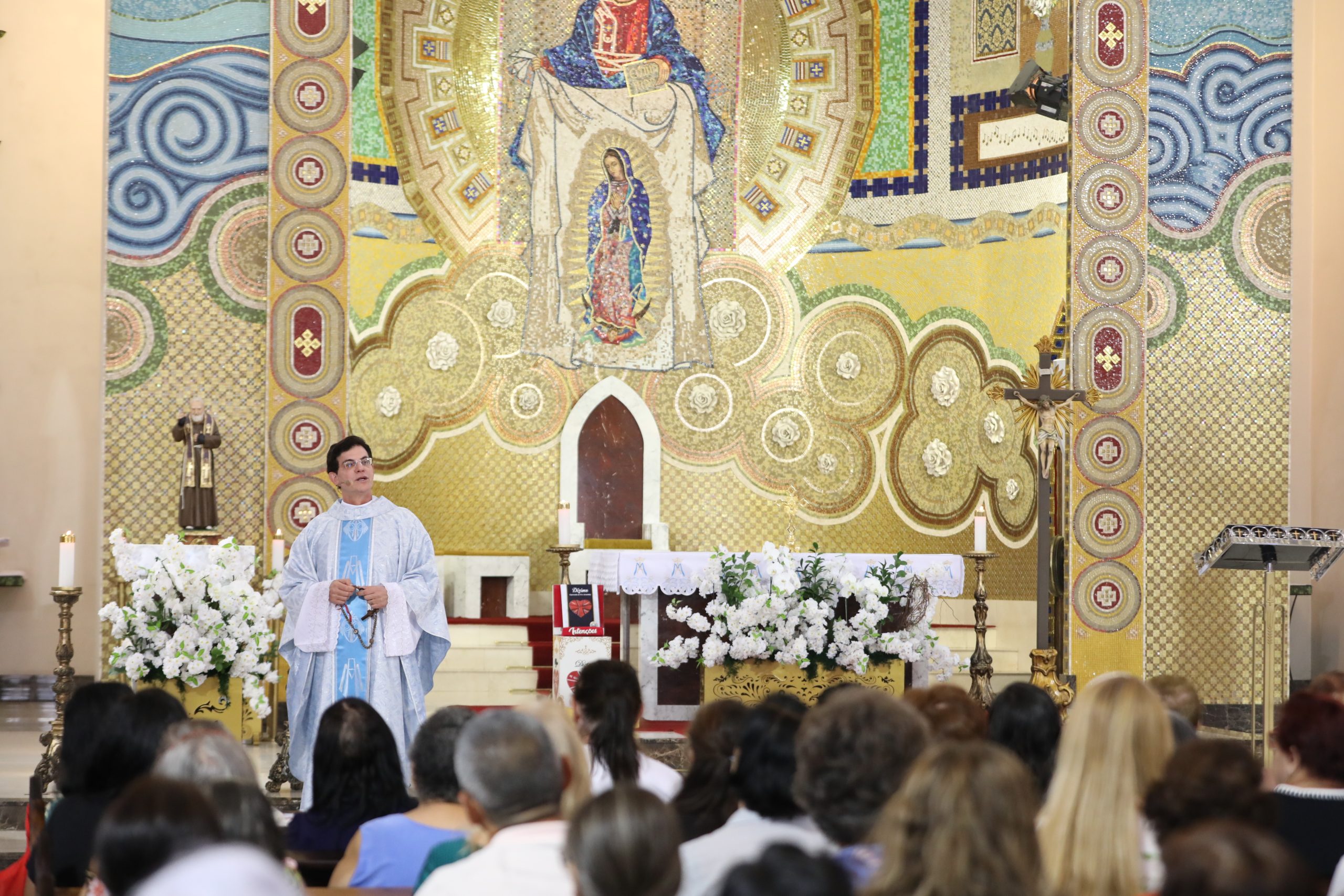 Padre Reginaldo Manzotti presidiu a Santa Missa do meio dia, em honra a Nossa Senhora de Lourdes, no Santuário de Nossa Senhora de Guadalupe e Jesus das Santas Chagas. Confira as fotos do momento. Fotos: Felipe Gusso